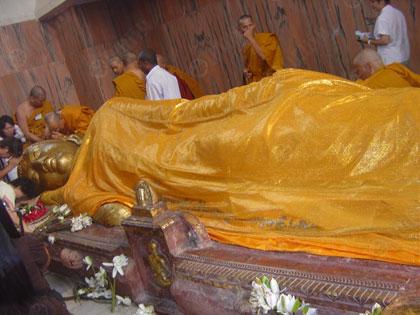 ปีนี้วันวิสาขบูชา หรือวันเพ็ญเดือน 6 ตรงกับวันที่ 17 พฤษภาคม 2554 นับเป็นวันสำคัญที่สุดในพระพุทธศาสนา เพราะเป็นวันคล้ายวันที่เกิดเหตุการณ์สำคัญของพระพุทธศาสนามากถึง 3 เหตุการณ์ คือ เป็นวันคล้ายวันประสูติ, ตรัสรู้ และปรินิพพาน ซึ่งเรากำลังพูดถึงเรื่องนี้พอดี คณะออกเดินทางจาก ลุมพินีตอนเช้า ไปเมืองกุสินารา สถานที่ปรินิพพาน ระยะทาง 180 กม. ใช้เวลา 6 ชม. ผ่านด่านตรวจคนเข้าเมืองเนปาล - อินเดีย ตลอดเส้นทางฟังธรรมบรรยาย และแวะที่พุทธวิหาร "สุขาวดีที่ปลดทุกข์ เห็นสุขทันตา" ซึ่งคณะชาวไทยที่ศรัทธาร่วมกันสร้างขึ้นมาเพื่อชาวไทยโดยเฉพาะ เพราะรู้ว่าห้องน้ำสะอาดหายากมาก และขาดแคลน ท่านพระราชรัตนรังสี จึงรวมกับชาวไทย จัดสร้างขึ้นมาสะอาดที่สุดในย่านนั้น ตลอดเส้นทางฟังธรรมบรรยาย ท่านเคยคิดมั้ยว่า ตายแล้วเราจะไปอยู่ที่ไหน ? การเวียน ว่าย ตาย เกิด (วัฏสงสาร) มีจริงมั้ย ? ตายแล้วไปไหน ?