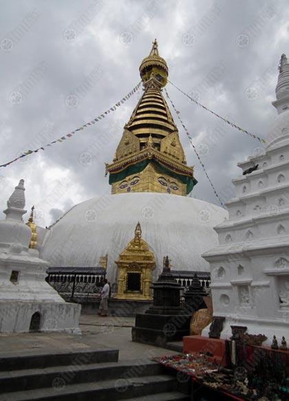 “เจดีย์พระสวยัมภูวนารถ” หรือที่ชาวเนปาลเรียกว่า “วัดลิง” เป็นเจดีย์สีเหลืองทองอร่ามตั้งอยู่