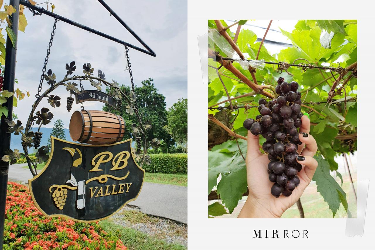 สาวๆ ที่ชื่นชอบธรรมชาติ และอยากพาตัวเองไปรับไออุ่นจากแสงแดด เปิดรับความสดชื่นจากกลิ่นดิน สูดธรรมชาติอย่างเต็มปอด ต้องไปกันที่นี่เลยกับไร่องุ่น PB Valley ที่นี่เขามีพื้นที่มากกว่า 2,500 ไร่ และอยู่ท่ามกลางหุบเขาที่แทบสมบูรณ์ที่สุดในไทยเลยนะคะสาวๆ ซึ่งไฮไลต์ของที่นี่คือ การชิมไวน์ที่เขาปลูกขึ้นเอง แถมยังมีโรงบ่มเพาะไวน์ด้วยนะ ไม่ว่าจะเป็นไวน์แดง ไวน์ขาว โดยเราสามารถเข้าไปเยี่ยมชมไร่องุ่นที่ใช้ในการทำไวน์ เข้าไปเยี่ยมชมโรงงานที่ผลิตไวน์ รวมถึงที่เพาะบ่มไวน์แบบใกล้ชิดได้อีกด้วย และที่สำคัญคือการชิมไวน์รสชาติต่างๆ แต่สำหรับ Lady MIRROR คนไหนที่ไม่ใช่สายแอลกอฮอล์ เขาก็มีน้ำองุ่นสุดเข้มข้นให้ชิมกันด้วยนะคะ ไม่ว่าคุณจะเป็นสายไหน มาที่นี่รับรองว่าต้องประทับใจอย่างแน่นอนค่ะ.