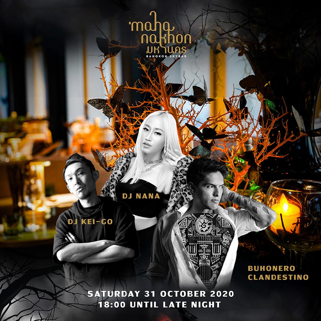 มาเปลี่ยนค่ำคืนหลอนๆ ด้วยปาร์ตี้ในคืนวันฮาโลวีนที่แสนสนุกไปกับ มหานคร แบงค็อก สกายบาร์ ชั้น 76 ชมวิวกรุงเทพฯ ที่รายล้อมไปด้วยแสงสีในยามค่ำคืน พร้อมรับความสนุกกับดนตรีสดให้เพลิดเพลินกับ Buhonero Clandestino ถ้าสาวๆ คนไหนที่ชอบดนตรีจังหวะโยกๆ เขาก็มีสองดีเจ อย่าง DJ Nana และ Dj Kei-Go ด้วยนะคะ เรียกว่าเป็นการไปฉลองวันฮาโลวีนที่เต็มไปด้วยความประทับใจอย่างแน่นอนค่ะ
