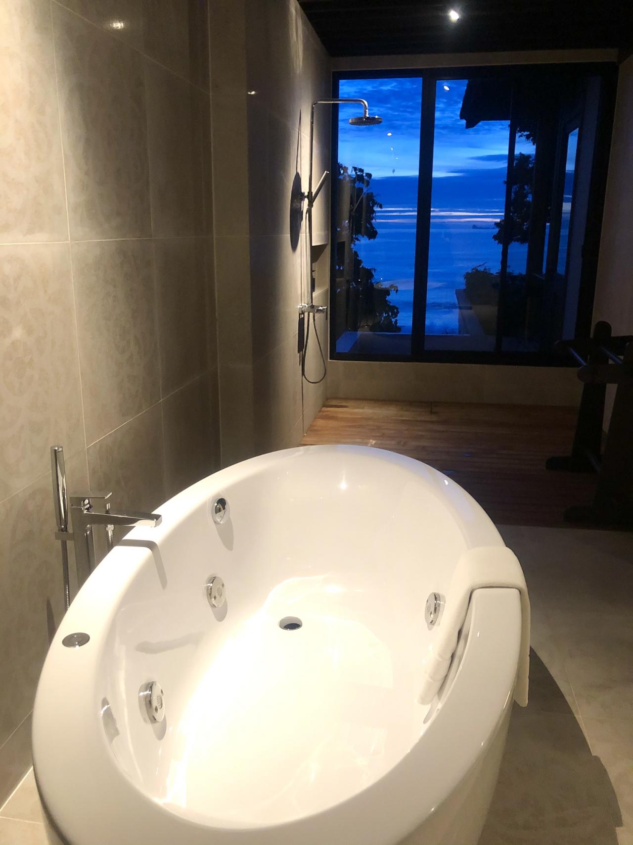 สำหรับคนที่ชอบทั้งวิวภูเขาและทะเล แนะนำให้เลือกพักแบบวิลล่าบนเนินเขาริมผา (Hillside Ocean View Pool Villa) ที่สามารถมองเห็นทิวทัศน์ของอ่าวบากันเตียงได้เกือบ 360 องศา