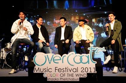 แถลงข่าวไปแล้วกับกิจกรรมที่เอาใจชาวกรุงร่วมทักทายลมหนาว...ก่อนใครกับเทศกาลดนตรี “โอเวอร์โค้ท มิวสิค เฟสติวัล 2011 ตอน..คัลเลอร์ ออฟ เดอะ วิน ” (Overcoat Music Festival 2011 COLOR OF THE WIND) เทศกาลดนตรีฤดูหนาวของจริง!! ที่จัดต่อเนื่องมาเป็นปีที่ 2 ที่สานต่อความรู้สึกดีๆ ของการพักผ่อนบวกกับดนตรีสบายๆในอากาศหนาวเย็น โดยมีคณะผู้จัดงาน นายสรกฤต ลัทธิธรรม ผู้จัดการฝ่ายการตลาด ผลิตภัณฑ์เครื่องดื่มตราช้าง นายปิยชาติ รัตน์ประสาทพร ผู้จัดการทั่วไป บริษัท ทรู มันนี่ จำกัด นายจุลพงษ์ คุ้นวงศ์ ประธานสภาอุตสาหกรรมท่องเที่ยว จังหวัดเพชรบูรณ์ พร้อมด้วยตัวแทนศิลปินมากมาย สร้างความสนุกสนานเป็นอย่างมาก ...