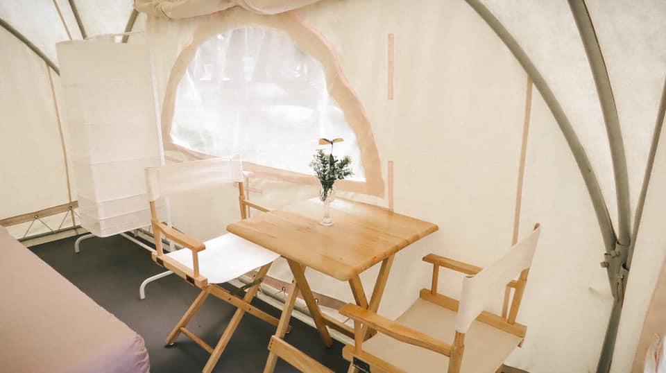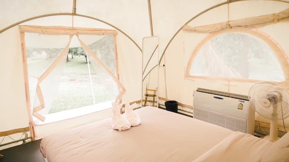 Tent Premium at Khao Yai เป็นห้องไพรเวตขนาดกะทัดรัด ตกแต่งสไตล์มินิมอล มีอุปกรณ์อำนวยความสะดวกเช่นเดียวกับห้องพักในอุทยาน อาทิ พัดลม, เครื่องปรับอากาศ, เตียงนอน, โต๊ะสนาม, โคมไฟ, ราวแขวนเสื้อผ้า, กระจก และผ้าเช็ดตัว