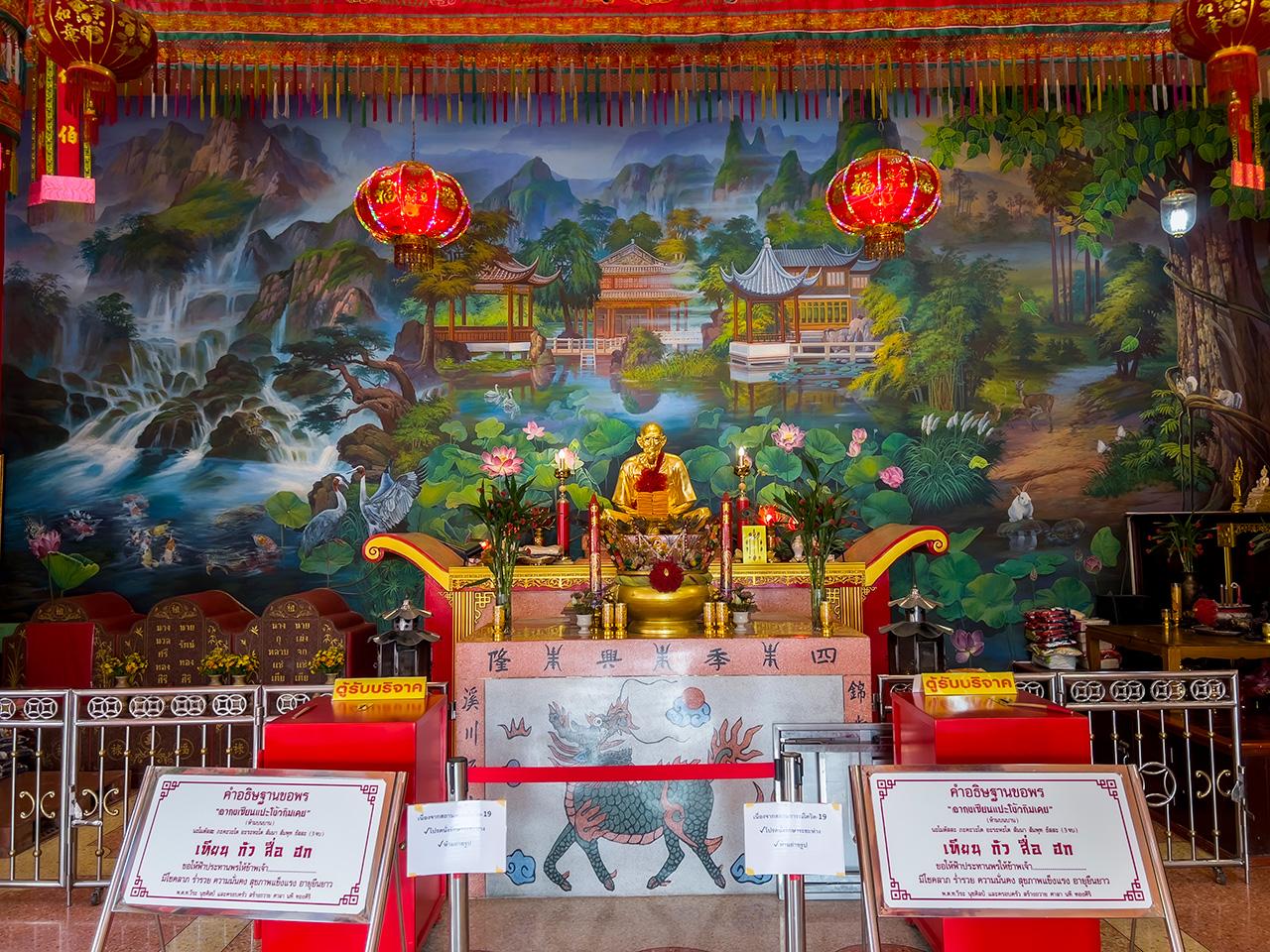 จำลองศาลเซียนแปะ โรงสี ฆราวาสชาวจีนผู้เรืองเวท ส่วนใหญ่นิยมมาขอพรเรื่องการเงินการงาน การทำธุรกิจการค้าให้เจริญรุ่งเรือง เมื่อได้สมปรารถนาแล้วก็จะนำผลไม้ของไหว้มงคลต่างๆ รวมถึงหุ่นจระเข้มาถวายเพื่อความเป็นสิริมงคล