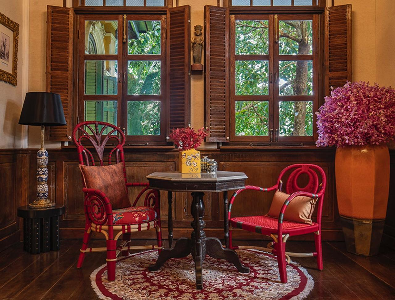 ตัวคฤหาสน์มีสีเหลืองมัสตาร์ดตัดสลับสีขาวและสีเขียว ถูกซ่อมแซมบูรณะขึ้นใหม่อย่างวิจิตรบรรจง ทั้งกระเบื้องโมเสกและพื้นไม้สักเพื่อคงสภาพเดิมมากที่สุด โดยมีพื้นที่ใช้สอยปัจจุบันแต่ละชั้นดังนี้