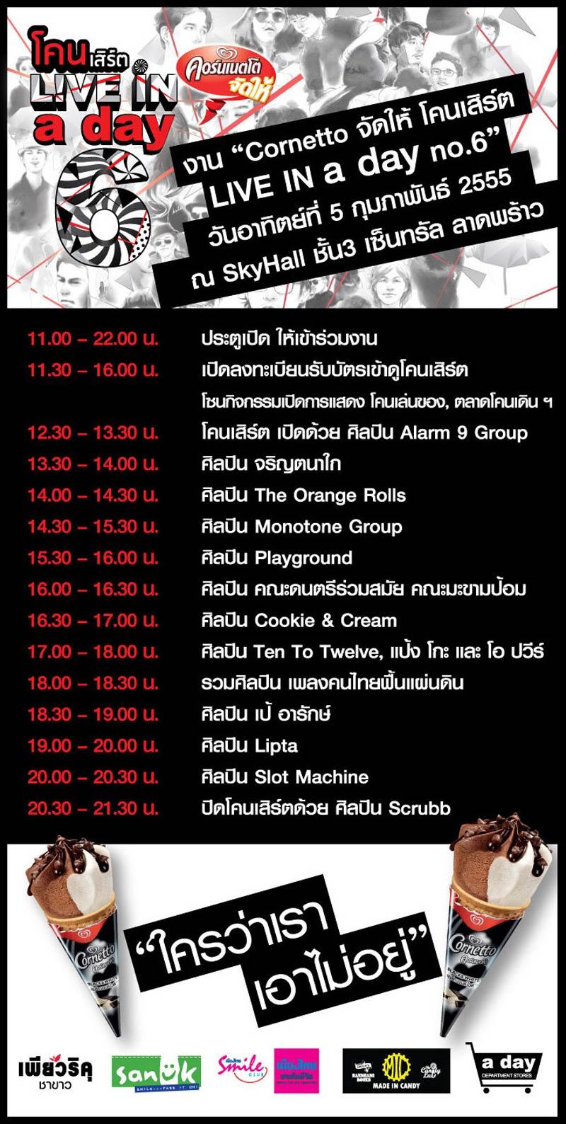 ห้ามพลาดเด็ดขาด อยากให้มาทำบุญด้วยกันเยอะๆ แถมยังเตรียมความมันไว้รอ พร้อมเพลงพิเศษ “คนไทยฟื้นแผ่นดิน” ที่ “ประภาส ชลศรานนท์” แต่ง และโปรดิวซ์โดย “ฟั่น-โกมล บุญเพียรผล” ค่าย บีลีฟ เรคคอร์ดส งานนี้เหล่าศิลปินขอเชิญชวนสื่อมวลชนมิตรรักแฟนเพลงไปช่วยกันร้องเพลงของพวกเขาดังๆ ในงานคอร์นเนตโต จัดให้ โคนเสิร์ต ไลฟ์ อิน อะเดย์ หมายเลข 6’ มันกัน งานนี้หนึ่งในโต้โผ ช้างน้อย กุญชร ณ อยุธยา รับประกันความมัน...