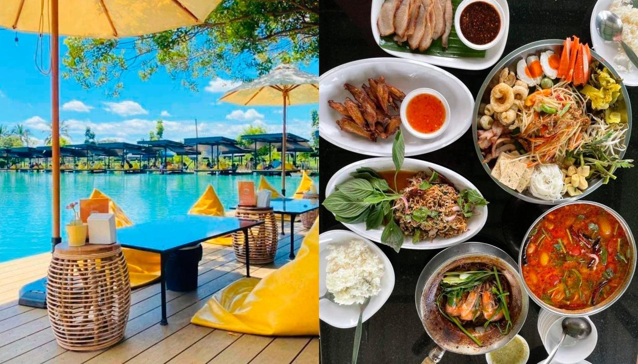 คาเฟ่ริมน้ำสไตล์ธรรมชาติ ย่านสามพรานนครปฐม ตกแต่งร้านด้วยบีนแบ็กกับร่มสีเหลือง พร้อมมุมถ่ายรูปสวยๆ และอาหารไทยแซ่บๆ ถ้าอยากรับประทานขนมก็มีฮันนี่โทส และเบเกอรี่ให้เลือกมากมาย