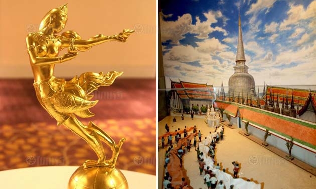 รางวัลกินรี & หุ่นจำลองประเพณีแห่ผ้าขึ้นธาตุในพิพิธภัณฑ์เมืองนครศรีธรรมราช.