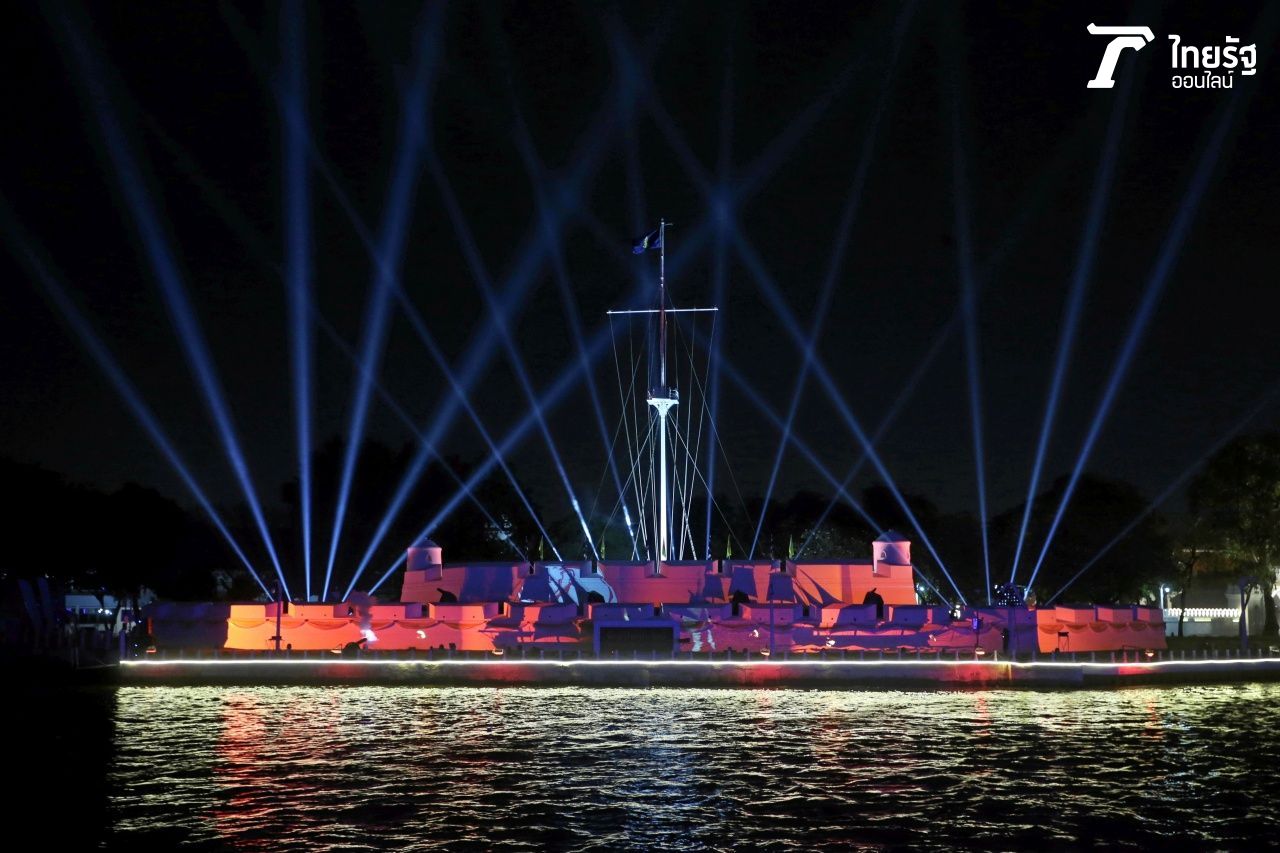 การแสดง Projection Mapping ประกอบแสงสี และเอฟเฟกต์พิเศษ ถ่ายทอดเรื่องราวความรุ่งเรืองวิถีแห่งสายน้ำตราบอดีตจวบปัจจุบัน ที่มีการเดินเรือค้าขาย การเดินทางติดต่อทางการทูต วิถีชีวิตของคนไทยกับสายน้ำ และการต่อสู้เพื่อความสุขสงบสันติของแผ่นดินโดยใช้กำแพงป้อมเป็นพื้นที่ฉายภาพ จัดแสดงทุกวันวันละ 6 รอบ ในวันที่ 19-20 และ 24-27 พ.ย. 2565 อัปเดตเวลาเป็น 19.00-19.06 น., 19.20-19.26 น., 20.00-20.06 น., 20.20-20.26 น., 21.10-21.16 น. และ 21.30-21.36 น. โดยมีการแสดงเทคนิคพิเศษทุกรอบ