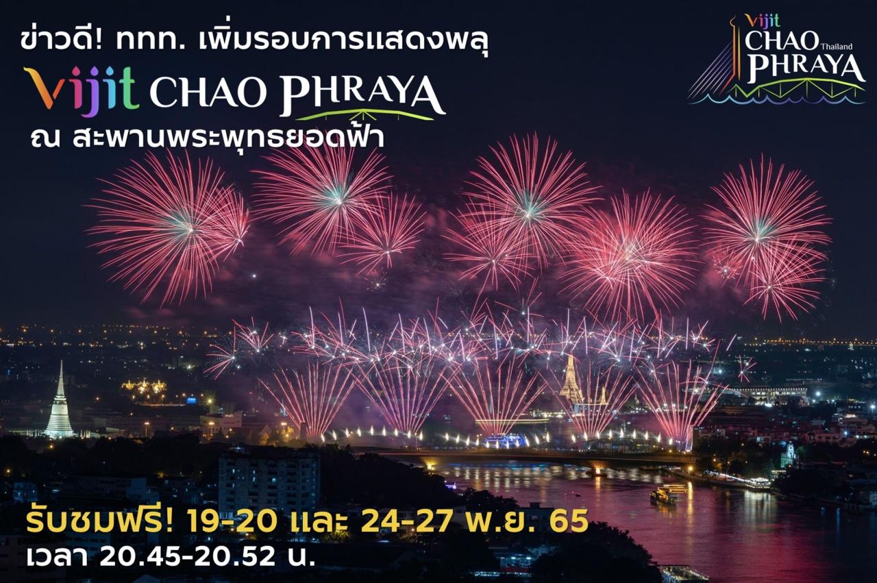 VIJIT CHAO PHRAYA งานแสดง แสง สี เสียง เพื่อต้อนรับการประชุมเอเปก 2022 ได้อัปเดตตารางรอบพิเศษและการแสดงพลุใหม่ ในวันที่ 19-20 และ 24-27 พ.ย. 2565 ดังต่อไปนี้