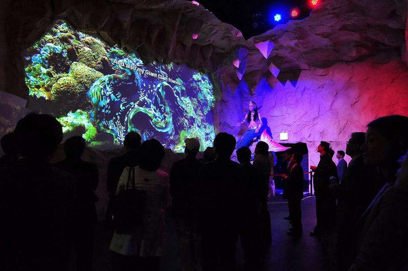นิทรรศการส่วนที่ 2 : ปริศนาแห่งบาดาล ตำนานนาควารินทร์สินธุ์สมุทร (The Secret of Nak-varinthu-sinsamuth) พบกับ “นางเงือก” ในถ้าลึกลับใต้สมุทร ที่จะเล่าขานเรื่องราวความสัมพันธ์ระหว่างประเทศไทย และสาธารณรัฐเกาหลี ผ่านจอภาพ และจอรับภาพพิเศษรูปทรงเรือ ที่สื่อให้ผู้ชมนิทรรศการเข้าใจถึงศักยภาพความงดงาม ความสมบูรณ์ที่ยั่งยืนของทะเลและชายฝั่งไทย ภายใต้แนวคิดการอนุรักษ์ และฟื้นฟูธรรมชาติทางทะเล ซึ่งน้อมนำจากพระราชดำริของพระบาทสมเด็จพระเจ้าอยู่หัว และพระราชเสาวนีย์ในสมเด็จพระนางเจ้าฯ พระบรมราชินีนาถ ซึ่งมีรูปแบบการนำเสนอแบบเทคนิคโรงละครมายามิติ (Magic Theater) พาทุกท่านเพลิดเพลินกับเรื่องราวที่ถ่ายทอดด้วยระบบมัลติมีเดีย ระบบแสง สี เสียง อย่างเต็มรูปแบบ พร้อมหุ่นยนต์ “นางเงือก” เคลื่อนไหวเสมือนมนุษย์จริง
