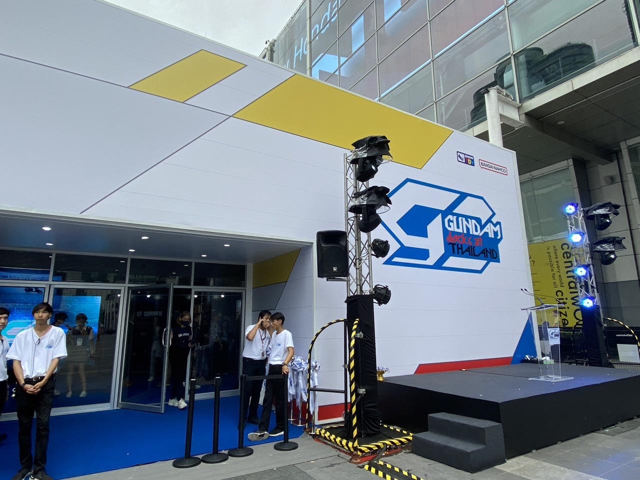 GUNDAM docks at Thailand จัดขึ้นที่ศูนย์การค้าเซ็นทรัลเวิลด์ บริเวณโซนกลางแจ้ง A และ B บนพื้นที่ 1,330 ตารางเมตร โดยเป็นการจำลองทางเข้างานให้เป็นเซ็นเตอร์ฐานบัญชาการ พร้อมหุ่นยนต์กันดั้มรุ่น RX-78-2 และรุ่น MS-06S ZAKU II ขนาด 6 เมตร ไว้ด้านหน้าอย่างอลังการ เพื่อให้นักท่องเที่ยวแวะเวียนมาถ่ายรูปกับหุ่นจำลองยักษ์ตัวนี้