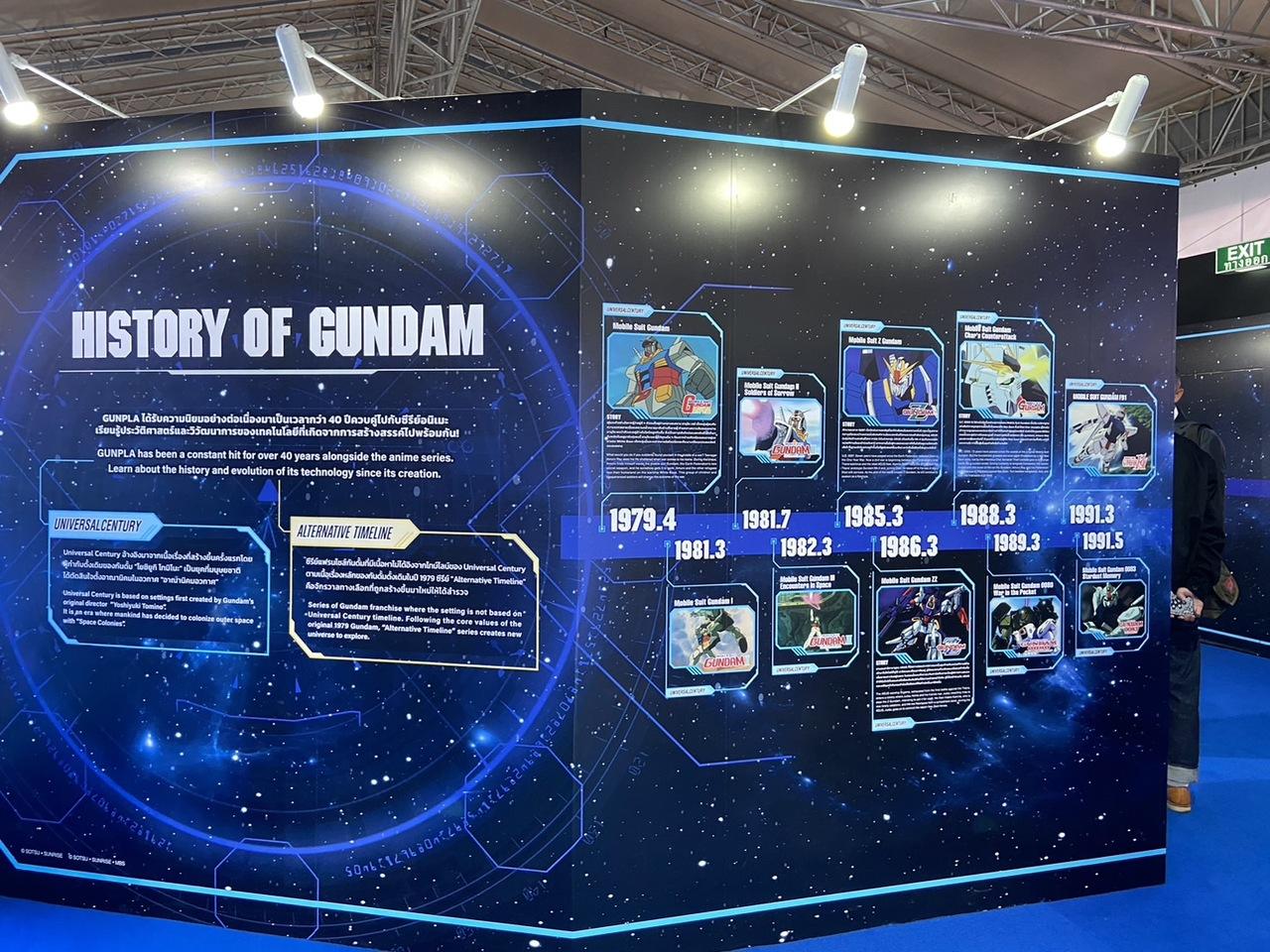 ทางเข้าด้านในด่านแรก เป็นการเล่าถึงประวัติของกันดั้ม ตั้งแต่จุดเริ่มต้นในปี 1979 จนถึงปัจจุบันในปี 2023 ที่จะกล่าวถึงเรื่องราวในจักรวาลของกันดั้มโดยย่อของแต่ละปี สาวกกันดั้มสามารถมาไล่เรียงประวัติหุ่นยนต์รบแต่ละภาคได้อย่างครบถ้วน