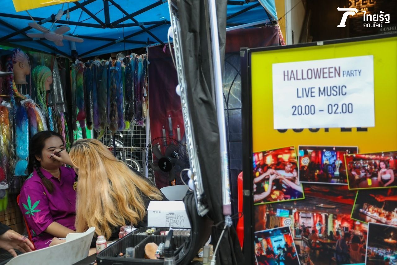 ล่าสุดช่วงบ่าย 4-5 โมงเย็น บรรยากาศฮาโลวีนที่ข้าวสารเริ่มคึกคักแล้ว ทั้งบรรยากาศของเส้นถนน ความปลอดภัย ณ ตอนนี้เริ่มมีนักท่องเที่ยวต่างทยอยเดินทางมา รวมถึงมีร้านค้า และร้านให้บริการแต่งหน้าผีมาคอยให้บริการ