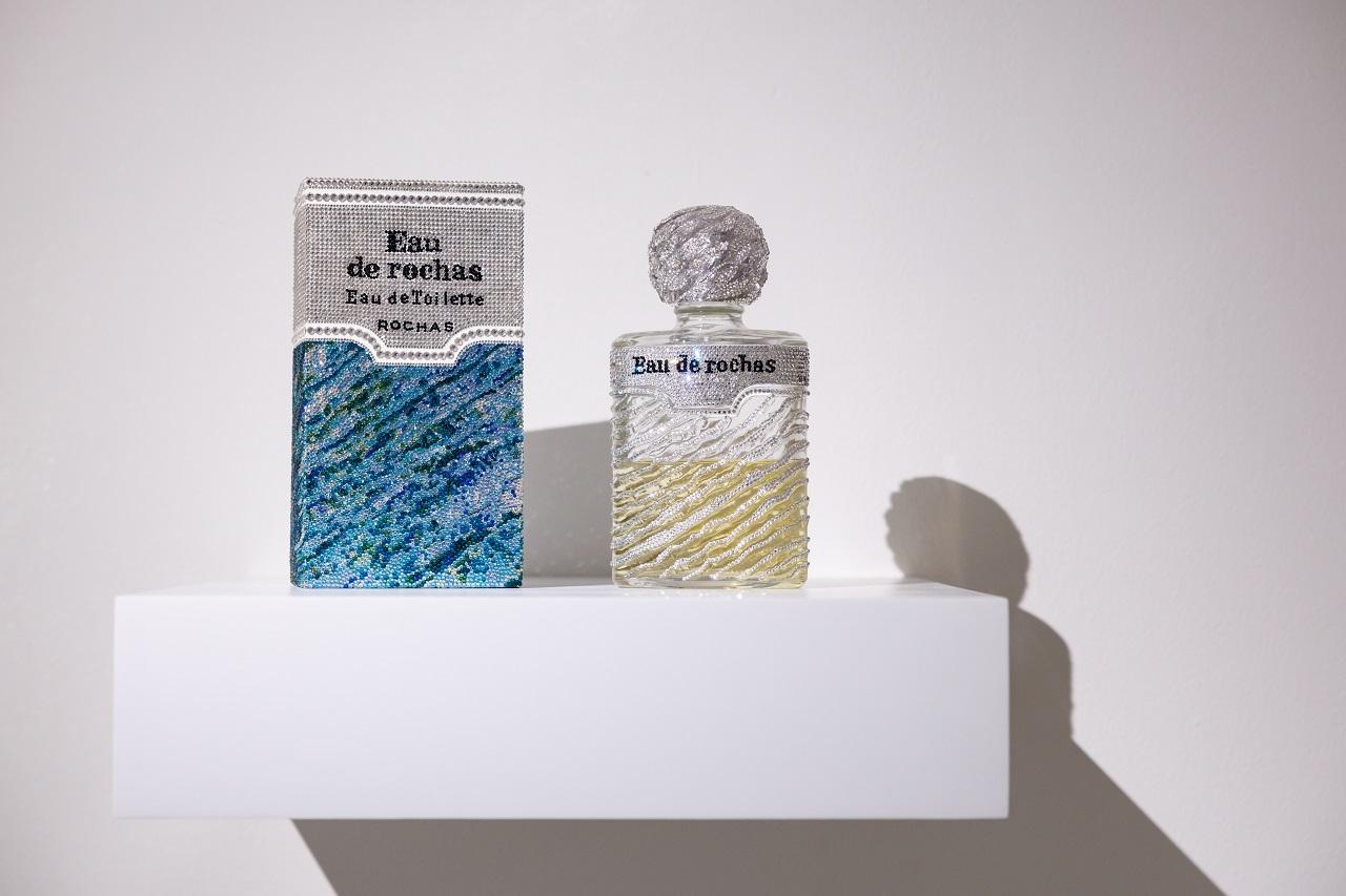 PARFUM L’HEURE BLEUE DE GUERLAIN คอลเลกชั่นกล่องน้ำหอม ซึ่งเป็นกล่องกระดาษแข็งต้นฉบับหายากจากยุค 90 ผลงานชิ้นแรกๆ ของ ชูรุก ที่ประดับด้วยสวารอฟสกี้ลงบนกล่องน้ำหอมตัวแทนของแม่