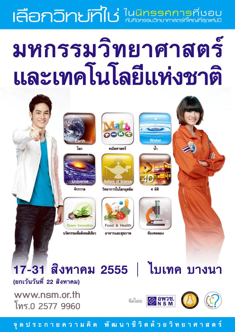 ทั้งนี้ เยาวชน ครอบครัว และประชาชนทั่วไป สามารถเข้าชมงาน “มหกรรมวิทยาศาสตร์และเทคโนโลยีแห่งชาติ 2555” ได้โดยไม่เสียค่าใช้จ่าย ตั้งแต่วันที่ 17-31 สิงหาคม 2555 เวลา 09.00 - 20.00 น. (ยกเว้นวันที่ 22 สิงหาคม) ที่ไบเทค บางนา ติดตามข้อมูลข่าวสารและรายละเอียดงานได้ที่ www.nsm.or.th/nst2012 หรือ Facebook : มหกรรมวิทยาศาสตร์และเทคโนโลยีแห่งชาติ เตือนแล้วนะว่า ถ้าพลาดงานดีๆ ครบทุกความรู้แบบนี้ไป...เสียดายแย่!!!