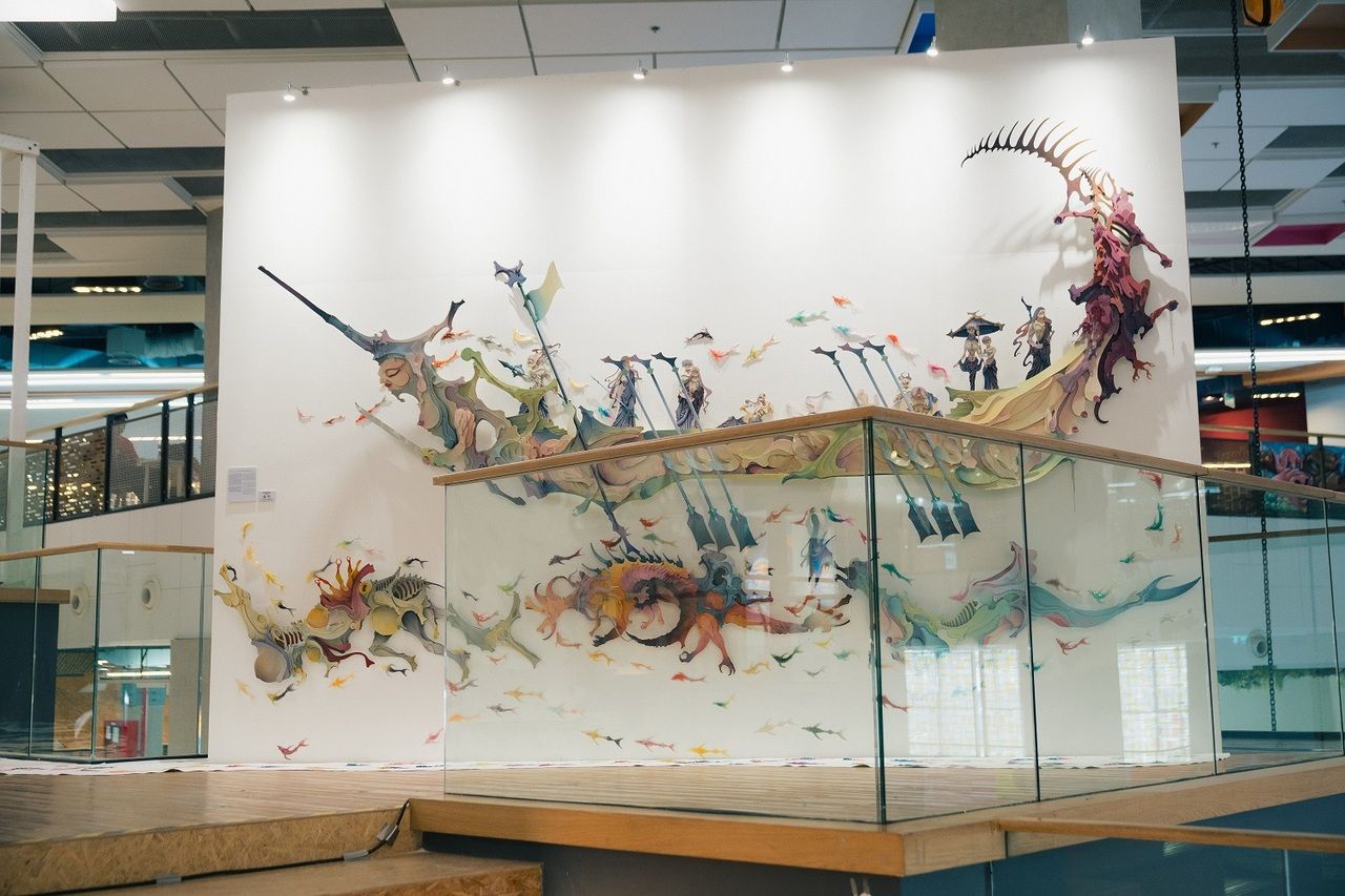 - Beyond the veil โลกหลังความตาย ถ่ายทอดผ่านเรื่องราวของเทพเจ้าและสิ่งมีชีวิตอย่างเหนือจินตนาการในดินแดนที่มนุษย์ไม่รู้จัก ม่านที่แบ่งระหว่างโลกแห่งชีวิตและความตาย สะท้อนถึงความแตกต่างระหว่างการลืมตาในโลกความจริงและการหลับตาในมิติแห่งความฝัน