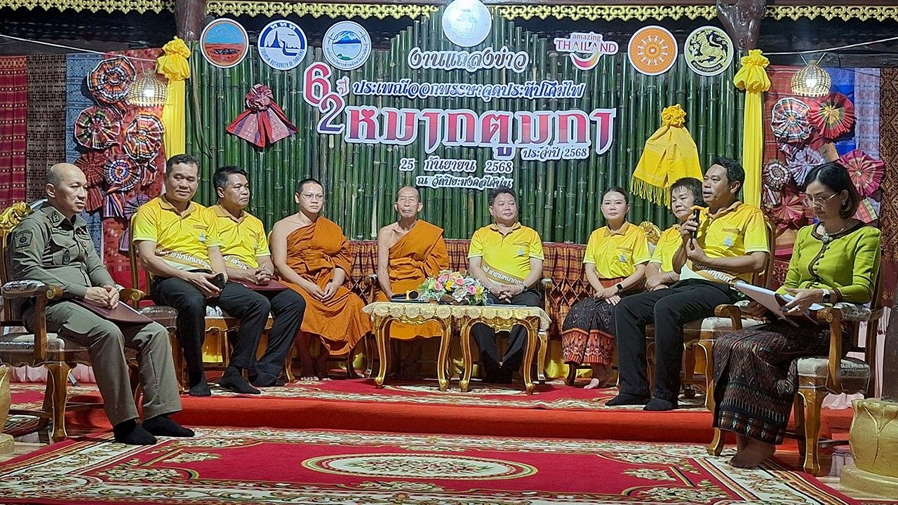 โดยในวันที่ 25 ต.ค.68 เวลา 16.30 น.ที่ลานเจ้าพ่อใหญ่ไค้นุ่นนคร วัดปิยะมงคล บ้านไค้นุ่น หมู่ 12 ต.ไค้นุ่น อ.ห้วยผึ้ง จ.กาฬสินธุ์ พระครูปริยัติ วราภิรักษ์ รองเจ้าคณะจังหวัดกาฬสินธุ์ นายธนภัทร ณ ระนอง รองผู้ว่าราชการจังหวัดกาฬสินธุ์ พร้อมด้วย นางสาวเฉลิมขวัญ หล่อตระกูล นายก อบจ.กาฬสินธุ์ นายอุทัย สิงห์ทอง พัฒนาการจังหวัดกาฬสินธุ์ นายชาญชัย พชระวรางกูล นายอำเภอห้วยผึ้ง นางสาวกุหลาบ พิศวงศ์ ส.อบจ.กาฬสินธุ์ นายพนม ประชาชัย นายก อบต.ไค้นุ่น และฝ่ายบริหาร พ.ต.ท.คุณวุฒิ เมธีพิตตินันท์ รอง ผกก.ป.สภ.ห้วยผึ้ง ร่วมกันแถลงข่าวการจัดงานประเพณีออกพรรษาจุดประทีปโคมไฟ (หมากตูมกา) ครั้งที่ 62 และแข่งขันเรือยาวประจำปี เนื่องในประเพณีวันออกพรรษา