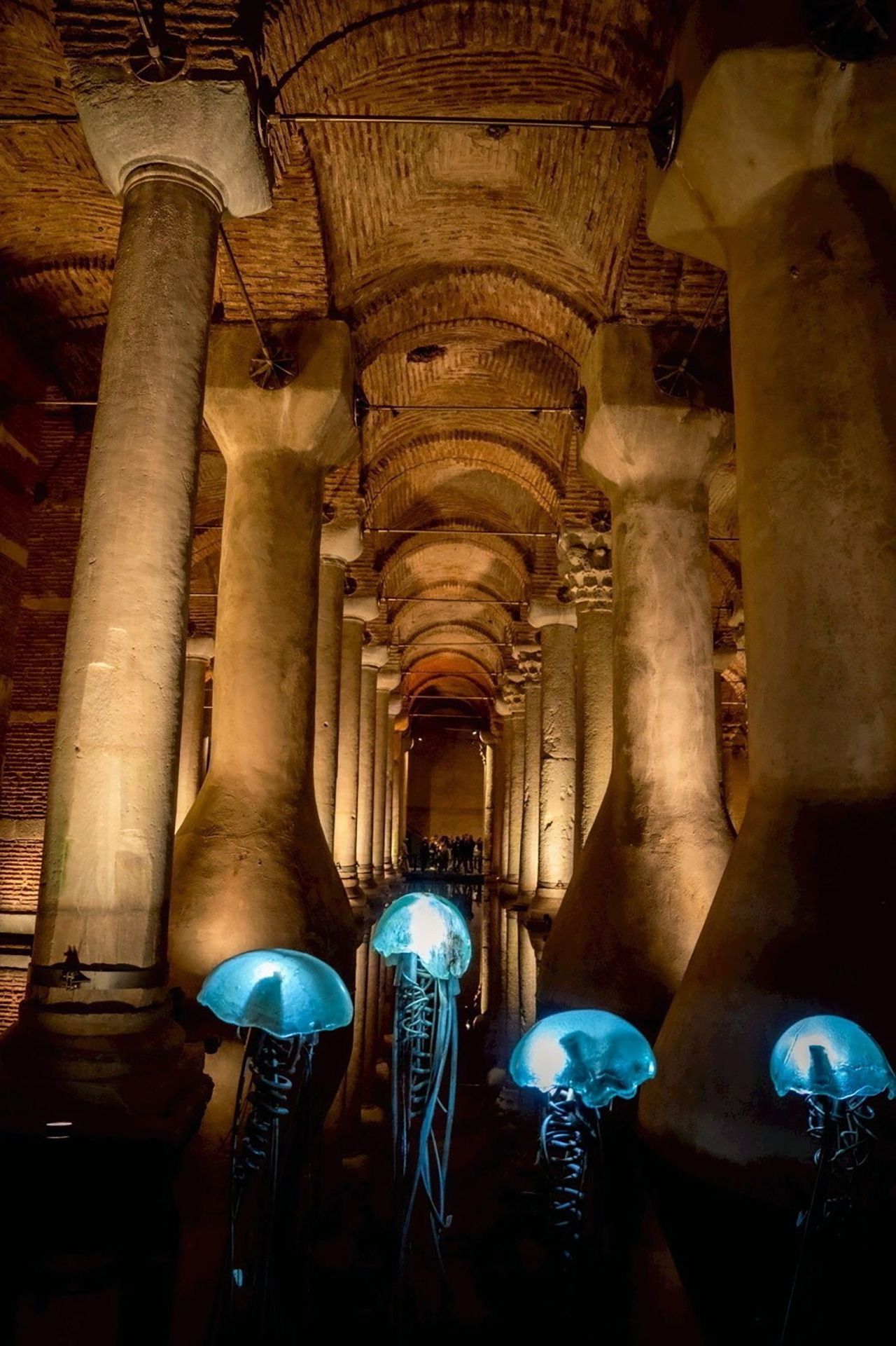 อีกหนึ่งงานสถาปัตยกรรมไบแซนไทน์อันน่าทึ่งยกให้ “เยเรบาตัน ซาร์นิจึ” (Basilica Cistern) สร้างขึ้นในคริสต์ศตวรรษที่ 6 โดยจักรพรรดิจัสติเนียนที่ 1 เพื่อเป็นแหล่งกักเก็บน้ำขนาดใหญ่สำหรับพระราชวังและอาคารสำคัญในอดีต โดดเด่นด้วยเสาหินอ่อนโบราณจำนวน 336 ต้น ที่ตั้งตระหง่านเรียงรายเป็นระเบียบภายในโถงใต้ดินขนาดมหึมา จุดดึงดูดสำคัญคือฐานเสาแกะสลักเป็นรูปเศียรเมดูซากลับหัว เสริมความขลังด้วยชิ้นงานประติมากรรมศิลปะจัดวางต่างๆ ปัจจุบันได้รับการปรับปรุงและเปิดให้เข้าชมในฐานะพิพิธภัณฑ์และสถานที่ท่องเที่ยวระดับโลก สะท้อนถึงความยิ่งใหญ่ทางวิศวกรรมของจักรวรรดิไบแซนไทน์