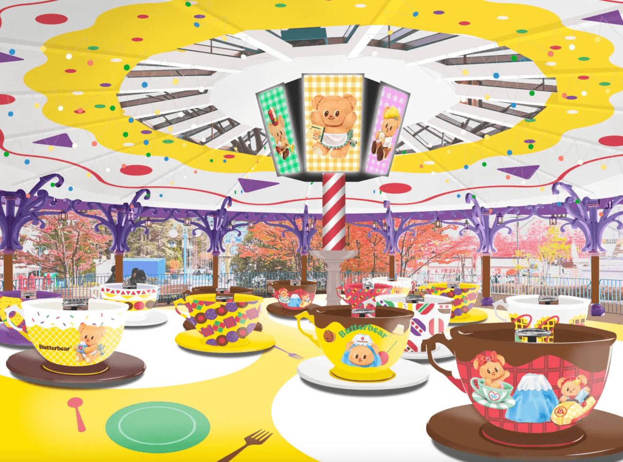 ไฮไลต์สำคัญเริ่มต้นที่การเปลี่ยนโฉมเครื่องเล่นถ้วยหมุน (Tea Cup) เดิม ให้กลายเป็น "Par-tea Cup" ในธีมปาร์ตี้สุดคึกคัก เครื่องเล่นนี้ได้รับการรีโนเวทใหม่ด้วยการติดตั้งจอ LED ขนาดยักษ์ไว้ตรงกลาง เพื่อฉายภาพความน่ารักของ Butterbear ประกอบกับระบบแสงสีเสียงเต็มรูปแบบ สร้างบรรยากาศให้ผู้เล่นรู้สึกเหมือนกำลังเต้นรำไปพร้อมกับน้องหมีเนยจริงๆ