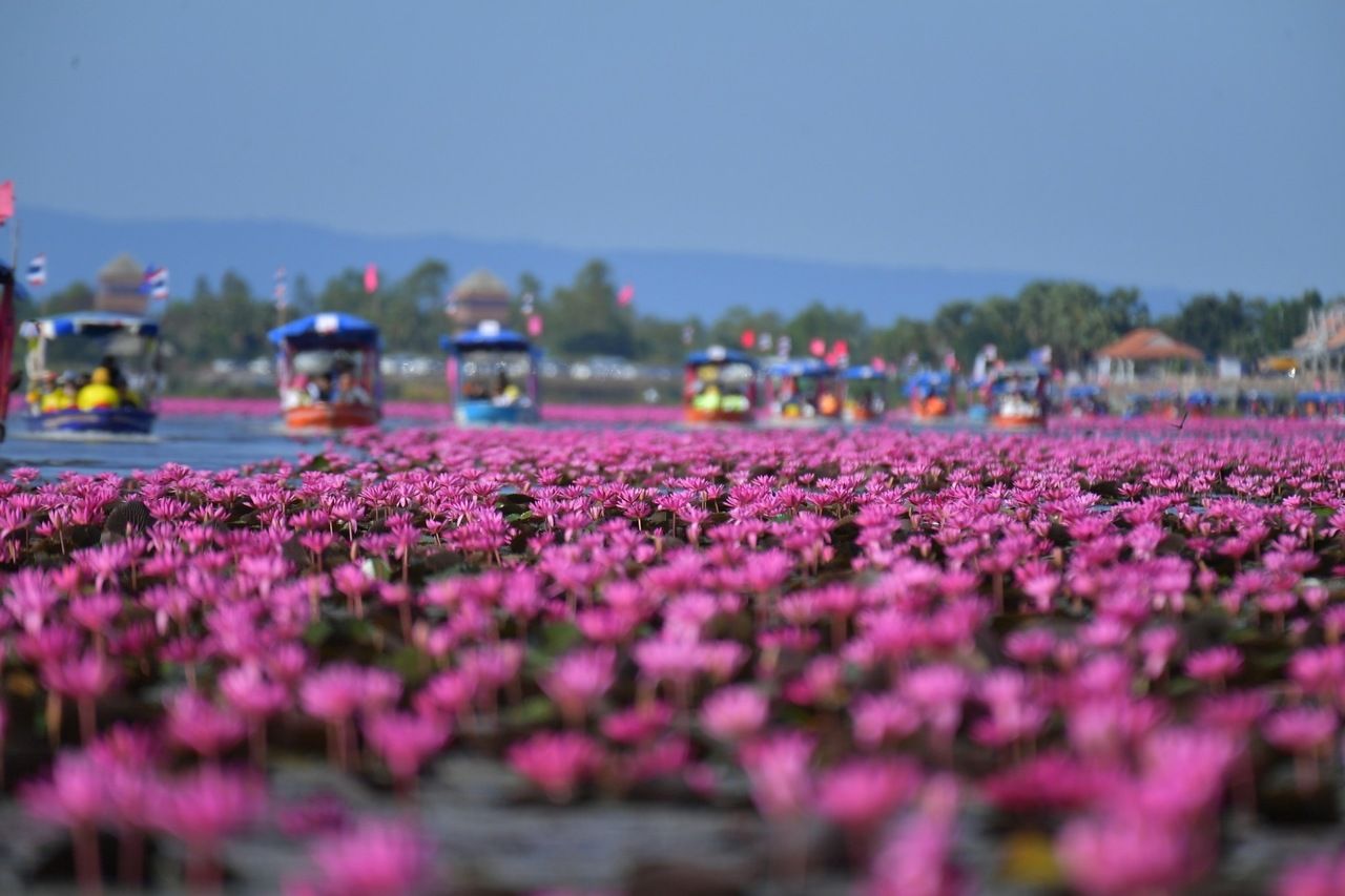 ไฮไลต์ห้ามพลาด คือ การล่องเรือแชะภาพมุมเดียวกับลิซ่า เป็นหนึ่งในกิจกรรมยอดฮิตที่ต้องทำ การนั่งเรือชมทุ่งดอกบัวแดง สุดลูกหูลูกตา ตัดกับแสงแดดอ่อนๆ ยามเช้า บอกเลยว่าแสงดีมู้ดดีมาก โดยช่วงสุดสัปดาห์ที่ผ่านมา (24-25 ม.ค.) มีเรือใหญ่ออกให้บริการกว่า 700 เที่ยว สร้างรายได้สะพัดให้ชุมชน