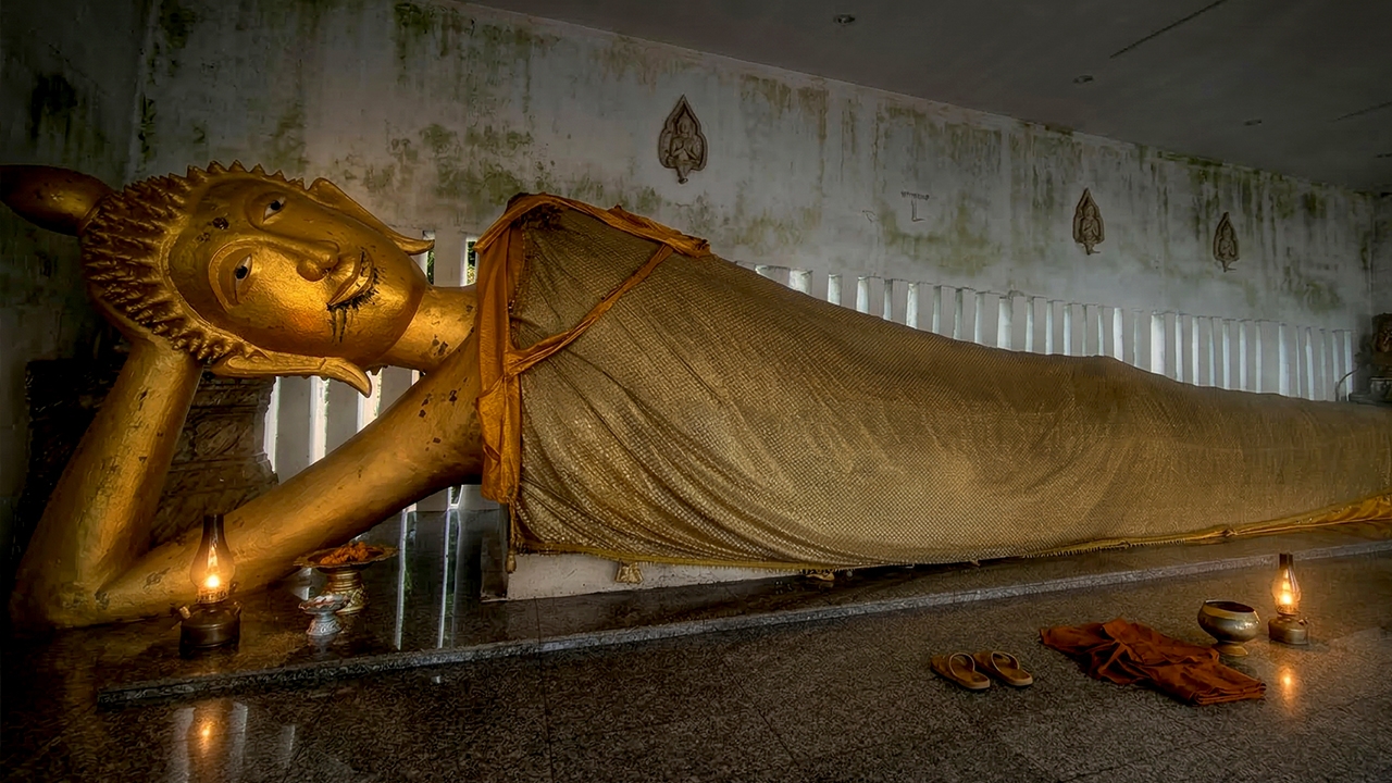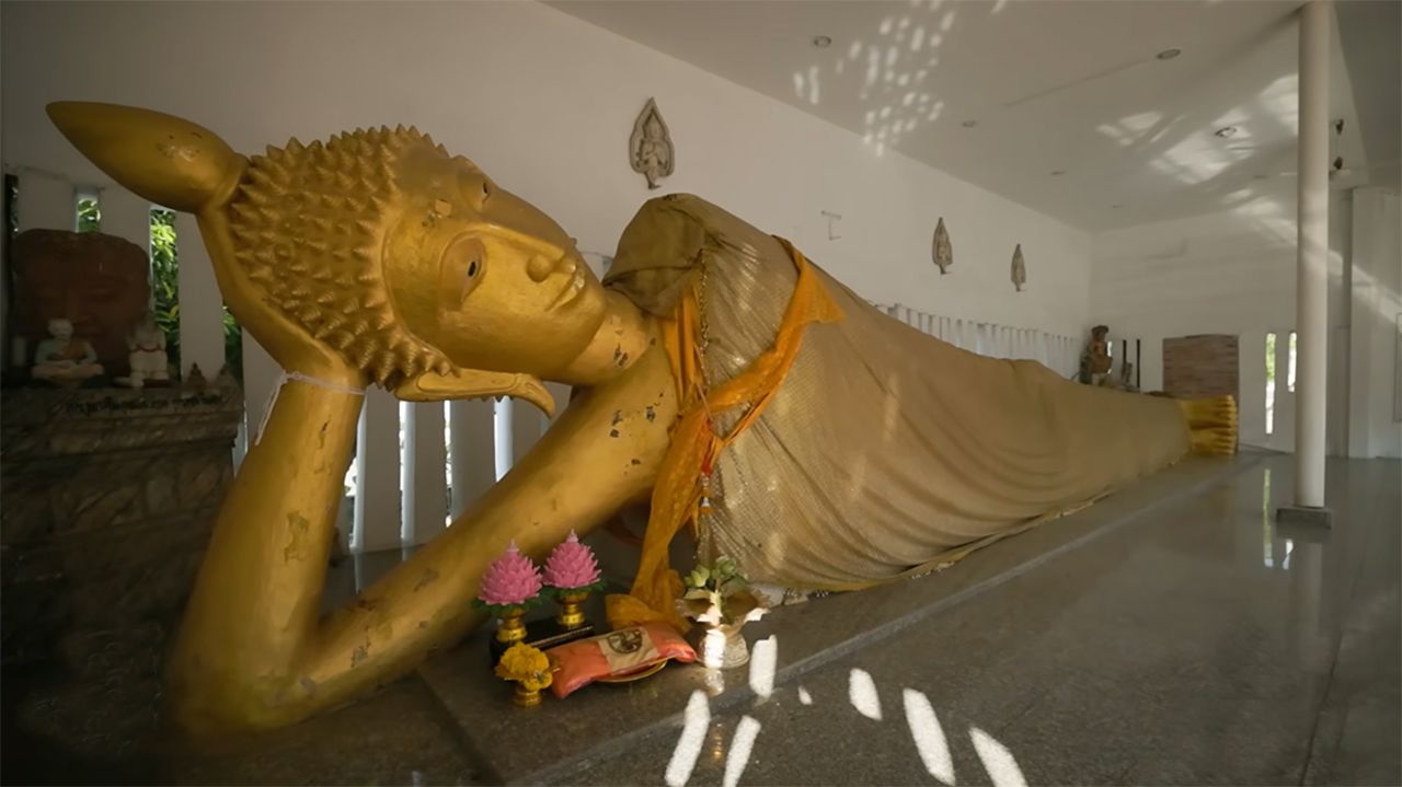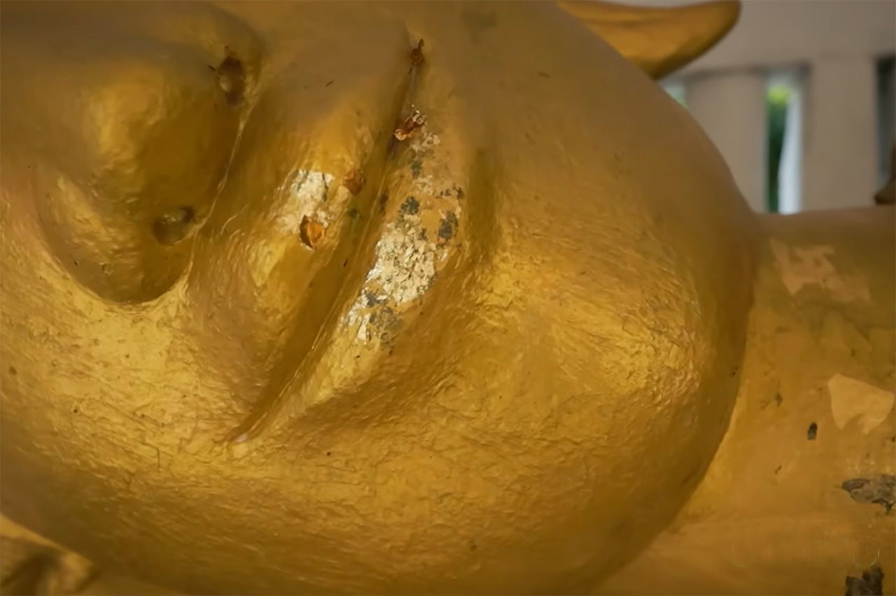ในช่วงเวลานั้น พระผู้ดูแลโบสถ์สังเกตเห็นเศษผ้าจีวรขาด ๆ ติดอยู่ที่ปากของพระพุทธรูปองค์ดังกล่าว และพบว่าขนาดของพระพุทธรูปนั้นใหญ่ขึ้นเรื่อย ๆ จนกระทั่งวันหนึ่ง พระพุทธรูปที่เคยเป็นปางยืนกลับกลายเป็นปางนอนตะแคง มีขนาดใหญ่กว่าคนสามคน เหตุการณ์นี้สร้างความตกใจและหวาดกลัวให้กับผู้คนในวัดและชุมชนโดยรอบ หลังจากนั้น ทางวัดได้ปิดประตูล้อมรั้วและจัดเวรยามเฝ้าบริเวณดังกล่าว ซึ่งตั้งแต่นั้นมาก็ไม่มีเหตุการณ์เณรหายอีกเลย