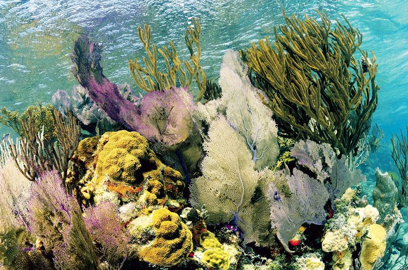 แนวปะการังคืออาณาจักรอันคลาคล่ำไปด้วยปะการังแข็ง ปะการังอ่อน ปะการังไฟ ปะการังลายถัก ปะการังสมอง ปะการังเขากวาง แส้ทะเล กัลปังหา สาหร่ายทะเลสีแดง และฟองน้ำ ที่นี่ยังเป็นแหล่งพักพิงของสัตว์ไม่มีกระดูกสันหลังมากมายหลากหลายอย่างน่าตื่นตาตื่นใจ ทั้งหอยกาบ ปู กุ้ง หนอนทะเล และปลิงทะเล พวกมันซ่อนตัวอยู่ตามซอกหลืบของแนวปะการัง บ้างเจาะรูอยู่ในปะการัง บ้างเกาะอยู่บนยอดปะการัง