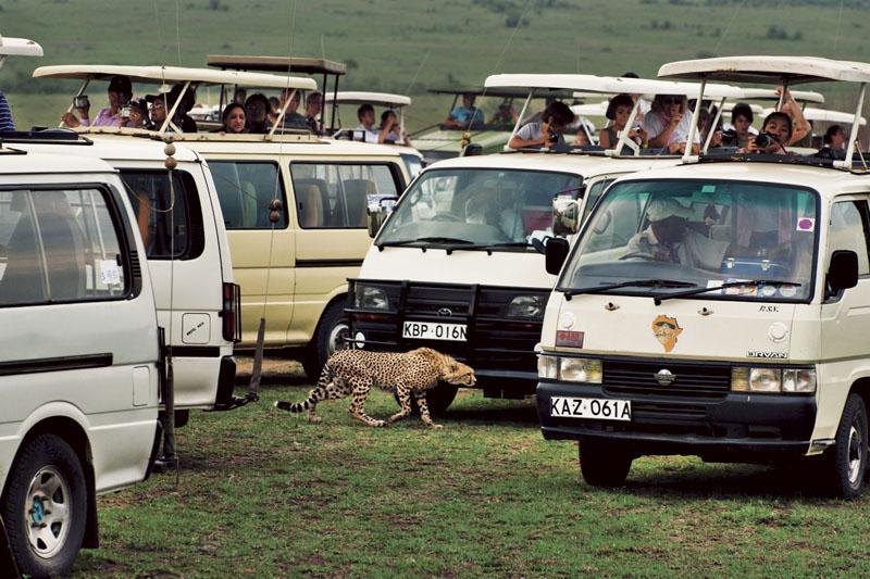 แม้แต่ในอุทยานซาฟารีขนาดใหญ่หลายแห่งของแอฟริกา เสือชีตาห์ยังไม่วายเผชิญความท้าทายอย่างใหญ่หลวง ด้วยอุปนิสัยขี้อายและสรีระอันบอบบาง เสือชีตาห์ซึ่งเป็นสัตว์วงศ์เสือและแมวชนิดเดียวที่คำรามไม่เป็น มักถูกสิงโตที่ร่างกายกำยำแข็งแรงและมีจำนวนมากกว่าไล่บี้คุกคามจนต้องไปอยู่ตามชายขอบ ลองดูอย่างอุทยานแห่งชาติเซเรงเกติของแทนซาเนียและเขตสงวนพันธุ์สัตว์ป่าแห่งชาติมาไซมาราของเคนยาที่อยู่ติดกันเป็นกรณีศึกษาก็ได้ อุทยานทั้งสองมีสิงโตรวมกันมากกว่า 3,000 ตัว เสือดาวราว 1,000 ตัว ขณะที่เสือชีตาห์มีเพียง 300 ตัวเท่านั้น