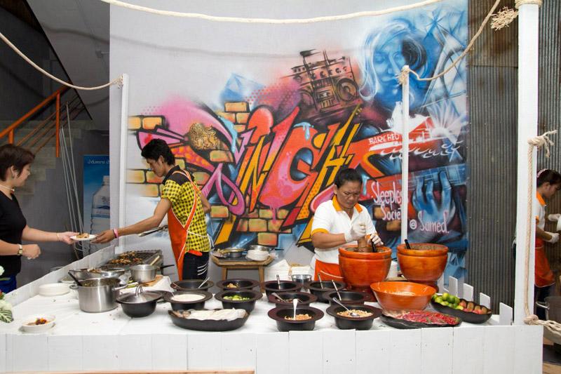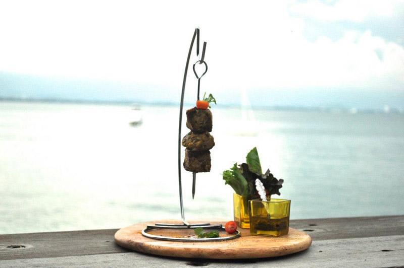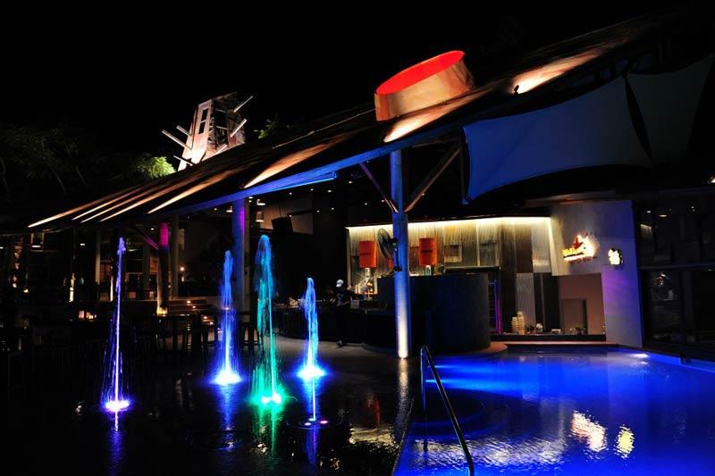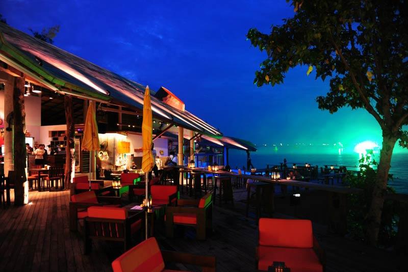 โซน “บาร์” หรือร้านอาหาร open-air ริมทะเลนี้ ถือเป็นไฮไลต์ของโรงแรมนี้เลยก็ว่าได้ “บาร์” ถูกออกแบบมาให้โดดเด่นสวยงามแม้มองมาจากทะเลในระยะไกลด้วยการใช้เพดานสูง ตกแต่งอย่างเรียบง่ายในสไตล์ลอฟท์ เพิ่มลูกเล่นด้วยการมีสระว่ายน้ำเล็กๆ และเตียงตาข่ายที่ขึงยื่นออกไปในทะเล ยามค่ำคืน “บาร์” แห่งนี้ถูกจัดเต็มด้วยเอฟเฟกต์ไฟ และดีเจที่มาสร้างสีสันให้คืนวันหยุดพักผ่อนของแขกผู้มาเยือนมีชีวิตชีวา ชื่อเมนูอาหารที่นี่ก็เข้าขั้นครีเอทีฟมากทีเดียว ไม่ว่าจะเป็นจานไทย จานฝรั่ง หรือจานลูกครึ่ง ถูกตั้งชื่อแฝงความสนุก ความฮาเข้าไปแล้วทั้งนั้น อาทิ ยาวยืดเยิ้ม รุงรังผัดสิ้นคิด หรือยำเมียชาคริต เป็นต้น ส่วนเรื่องรสชาตินับได้ว่ายอดเยี่ยมกระเทียมดอง อร่อยไม่แพ้ร้านอาหารขึ้นชื่อในกรุงเทพฯ เลยทีเดียว ต้องไปลองดูสักครั้งแล้วจะติดใจ