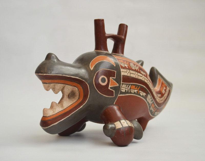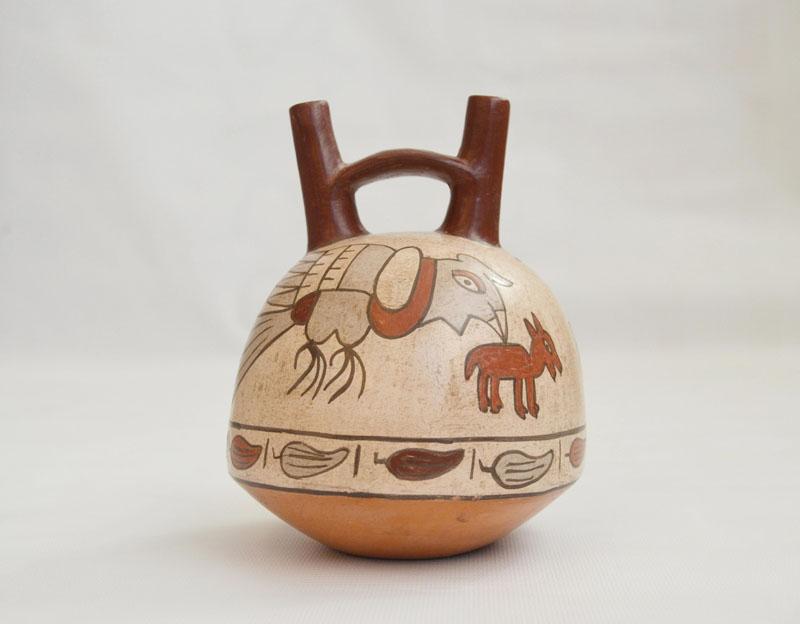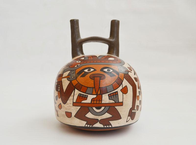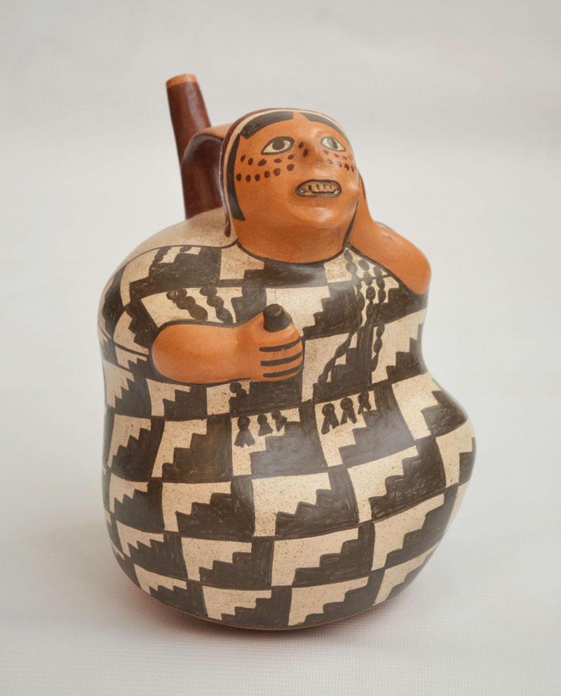 วัฒนธรรมนาซก้า ตั้งอยู่ทางชายฝั่งตอนใต้ของประเทศเปรู ชาวนาซก้ามีความเชื่อในพระเจ้าหลายองค์ พวกเขาบูชาธรรมชาติและมีเทพเจ้าที่แตกต่างกันออกไป อาทิ ภูเขา ทะเล ท้องฟ้า พื้นดิน ไฟ และน้ำ พวกเขามีความเชื่อเรื่องการฝังศพและความเชื่อเรื่องหลังความตาย ซึ่งร่างของผู้ตายจะถูกห่อด้วยผ้าคอตตอนที่ปักด้วยลวดลายและทาด้วยยางสน เพื่อป้องกันศพจากแมลงและเชื้อแบคทีเรีย สุดท้ายศพจะถูกเก็บในโลงศพที่ทำขึ้นเฉพาะจากอิฐที่ทำจากดินโคลน