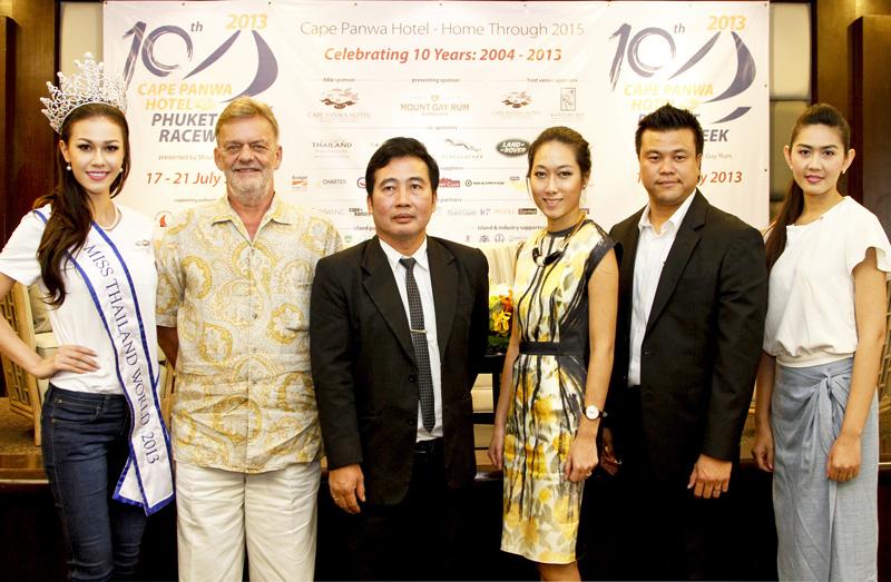 มิสเตอร์ไบรอน โจนส์ กรรมการผู้จัดการ บริษัท มีเดีย บิสิเนส เซอร์วิส จำกัด, น.ส.ธีรวัลคุ์ ปังศรีวงศ์ ผู้จัดการฝ่ายพัฒนาโครงการ ในเครือเกษมกิจ โฮเทลส์ ร่วมกันแถลงข่าวการจัดการแข่งขันเรือใบนานาชาติ “เคป พันวา โฮเทล ภูเก็ต เรสวีค 2013” ในฐานะเจ้าของลิขสิทธ์ และผู้สนับสนุนหลัก โดยมีนายนภดล ภาคพรต ผู้อำนวยการ กองส่งเสริมกิจกรรมการท่องเที่ยวแห่งประเทศไทยร่วมเป็นเกียรติ ที่การท่องเที่ยวแห่งประเทศไทย