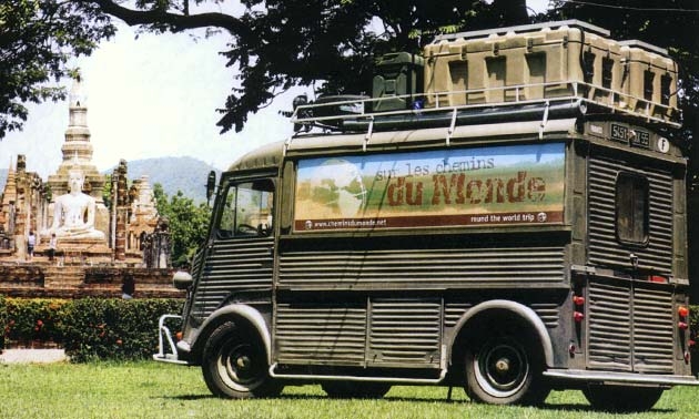 สองสามี-ภรรยา คือ ยานน์และเจอรัลดีน เขาใช้ รถ HACHILLE คันนี้ออกท่องโลกตามประเทศต่างๆ ทั้งยุโรป อเมริกา แล้วนำเรื่องราวการท่องโลกมาเขียนลงใน นิตยสารแกสโซลีน (GAZOLINE) เป็นภาษาฝรั่งเศส ซึ่งมียอดขายเดือนละกว่า 100,000 ฉบับ ผมจะขอเล่าเรื่องการท่องเที่ยวในเมืองไทยของสองสามี-ภรรยา ที่ได้แปลมาจากนิตยสารแกสโซลีนที่เขาเขียนไว้