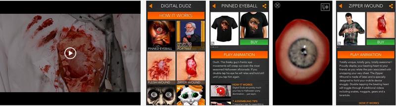 แอพพลิเคชั่นนี้ เป็นแอพแต่งรูปผี ๆ ผสมไอเดียกิ๊บเก๋ Digital Dudz apps เป็นการแอพพลิเคชั่นที่จะแสดงภาพ แอนิเมชั่นแนวสยองขวัญที่เรามักจะเห็นในหนังบ่อย อย่างลูกตาที่เบิกโพลง ที่เห็นแล้วต้องขนพองสยองเกล้า รูปหัวใจกำลังเต้นตุบ ๆ ลำไส้ ๆ และอวัยวะภายในต่าง ๆ ที่ดูแล้วต้องหยีแน่นอน