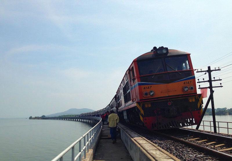 และแล้วภาพเบื้องหน้าที่สะดุดตา คือ ผืนน้ำขนาดใหญ่ที่ยาวไกลสุดลูกหูลูกตา แน่นอนว่า ถ้าพูดถึงเขื่อนน้ำที่ยาวที่สุดในประเทศไทย ต้องยกให้ อ่างเก็บน้ำของเขื่อนป่าสักชลสิทธิ์ ด้วยทิวทัศน์อันงดงาม ทำให้เจ้าหน้าที่ รฟท. ได้ส่งสัญญาณให้คนขับรถไฟหยุดขบวนรถกลางเขื่อน เสียงปรบมือได้ดังทั่วโบกี้ เพราะภาพที่ทุกคนบนขบวนรถไฟเที่ยวพิเศษนี้เห็น คือ รถไฟกำลังจอดอยู่บนเขื่อนราวกับ "รถไฟลอยน้ำ" สร้างความตื่นตาตื่นใจให้กับเด็กๆ ส่วนผู้ใหญ่ก็คว้ากล้องเพื่อบันทึกภาพที่แสนวิเศษนี้เอาไว้ ที่พิเศษยิ่งกว่านั้น คือ เส้นทางนี้มาได้เฉพาะทางรถไฟเท่านั้น ไม่มีทางให้รถยนต์วิ่งผ่านได้