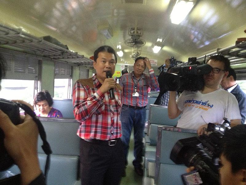 คุณธัญลักษณ์ แสงแก้ว (ผู้โดยสาร) บอกว่า "ครั้งนี้นับเป็นครั้งที่ 2 ที่ได้เดินทางไปดูทุ่งทานตะวัน แต่ถือเป็นครั้งแรกที่เดินทางโดยรถไฟ ที่เลือกการเดินทางด้วยรถไฟครั้งนี้ เพราะอยากสัมผัสกับความรู้สึกตอนรถไฟจอดกลางเขื่อนป่าสักชลสิทธิ์" เช่นเดียวกันกับผู้โดยสารคนอื่นๆ ที่ร่วมเดินทางมากับขบวนรถไฟพิเศษเที่ยวนี้ เพราะอยากจะเห็นว่า รถไฟลอยน้ำนั้นเป็นอย่างไร