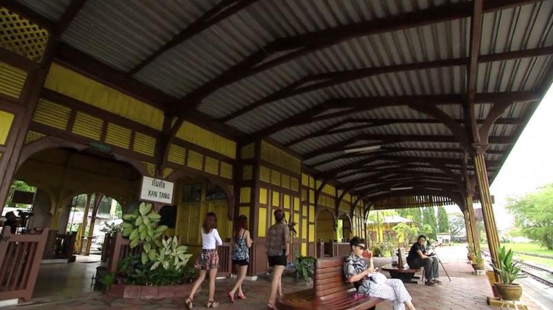 ขับรถไปไม่ไกลจากบ้านพระยารัษฎาฯ เราจะเห็นอาคารไม้ชั้นเดียว ทรงปั้นหยา สีเหลืองสดสลับน้ำตาล เด่นสะดุด ที่นี่คือ สถานีรถไฟกันตัง สถานีรถไฟสุดทางของทางรถไฟสายใต้ ฝั่งทะเลอันดามัน ความเก่า คลาสสิกของอาคารเรือนไม้ที่คงเอกลักษณ์การก่อสร้างมาตั้งแต่สมัยรัชกาลที่ 6 ทำให้ที่แห่งนี้ กลายเป็นแลนด์มาร์คที่ทุกคนต้องมาแชะ แอนด์ แชร์