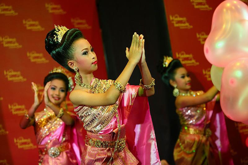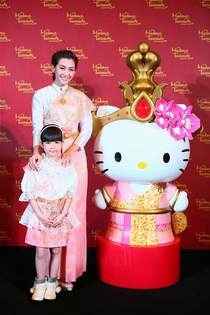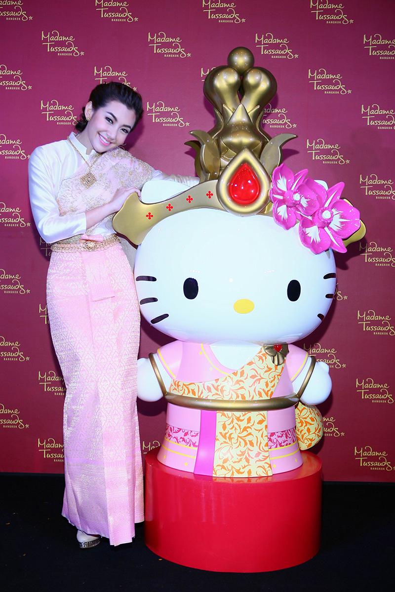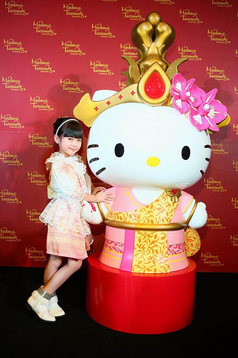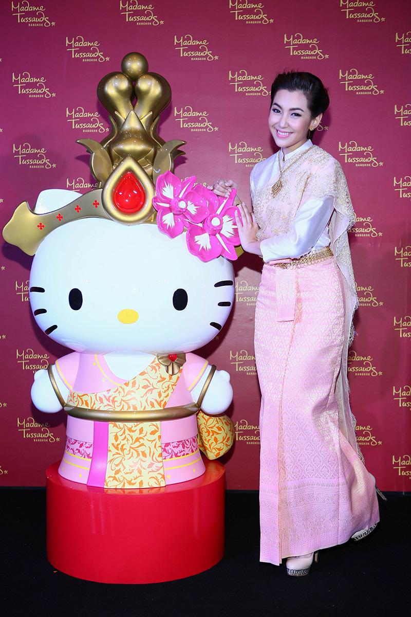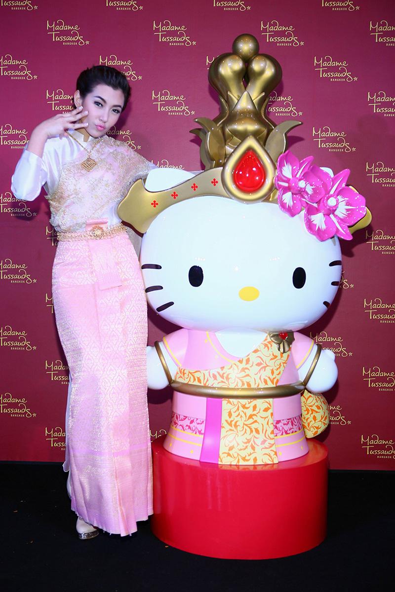 วันนี้จึงถึงเวลาที่ เฮลโล คิตตี้ จะนำความน่ารักและสนุกสนานมาสู่ มาดามทุสโซ กรุงเทพฯ เคียงข้างดาราดังระดับโลกคนอื่นๆ และเพื่อแฟนๆ ชาวไทยโดยเฉพาะ เฮลโล คิตตี้ จึงเปลี่ยนโฉมจากหัวจรดเท้า จากโบว์สีแดงเป็นชฎาของไทย และชุดลายจุดที่คุ้นตา เป็นสไบผ้าไหมอันสวยงาม
