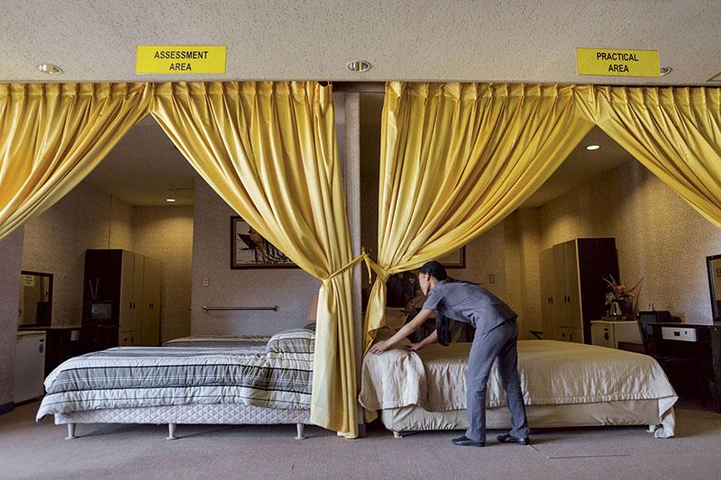 แล้วตึกระฟ้านอกหน้าต่างแท็กซี่นั่นล่ะ ทุกตึกล้วนสร้างจากหยาดเหงื่อของแรงงานต่างชาติ ส่วนใหญ่เป็นแรงงานชายจากเอเชียใต้อย่างอินเดีย เนปาล ปากีสถาน และบังกลาเทศ ถ้าเป็นตอนกลางวัน รถโดยสารว่างเปล่าจะจอดอยู่ใต้ตึกระฟ้าที่กำลังก่อสร้าง เพื่อรอส่งคนงานตอนโพล้เพล้กลับไปยังบ้านพักคนงานที่แออัดเหมือนเรือนจำ