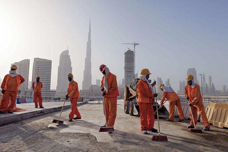 ดูไบยุคใหม่ได้ตัดสินใจแล้วว่า นครอันน่าตื่นตาแห่งนี้จะก่อร่างสร้างขึ้นและขับเคลื่อนด้วยแรงงานต่างชาติ เพราะมีชาวเอมิเรตส์น้อยคนนักที่ยอมทำงานประเภทนี้ ทำไมประเทศเศรษฐีใหม่จะต้องให้ประชากรวัยผู้ใหญ่ของตนเสิร์ฟอาหารหรือเทปูนท่ามกลางความร้อน 48 องศาเซลเซียสด้วยเล่า จากผู้คน 2.1 ล้านคนในดูไบ มีเพียงหนึ่งในสิบคนเท่านั้นที่เป็นชาวเอมิเรตส์ ส่วนที่เหลือเป็นประชากรหยิบยืมจากต่างชาติที่เข้ามาทำงานตามสัญญาจ้างชั่วคราวโดยรู้ดีว่า พวกเขาไม่มีวันได้รับสัญชาติเอมิเรตส์
