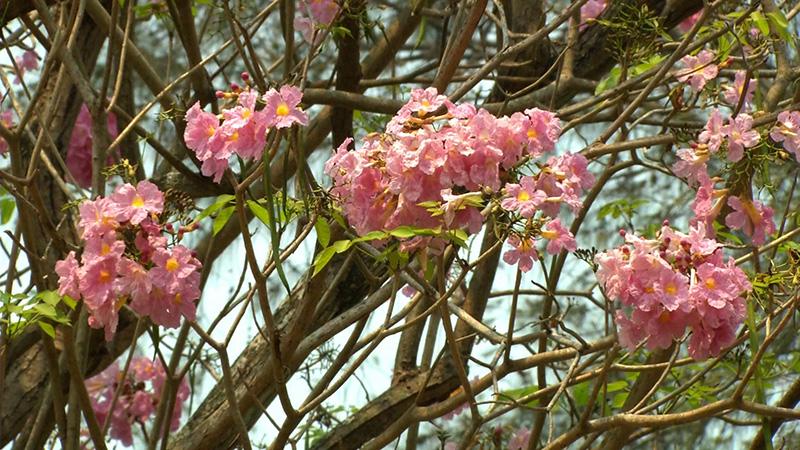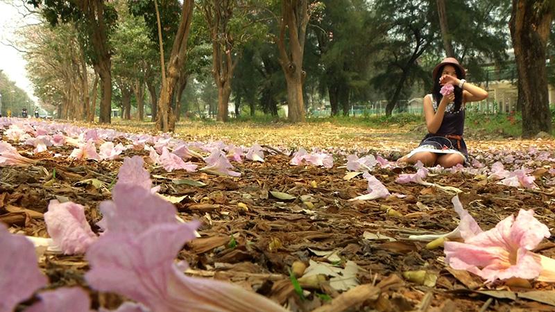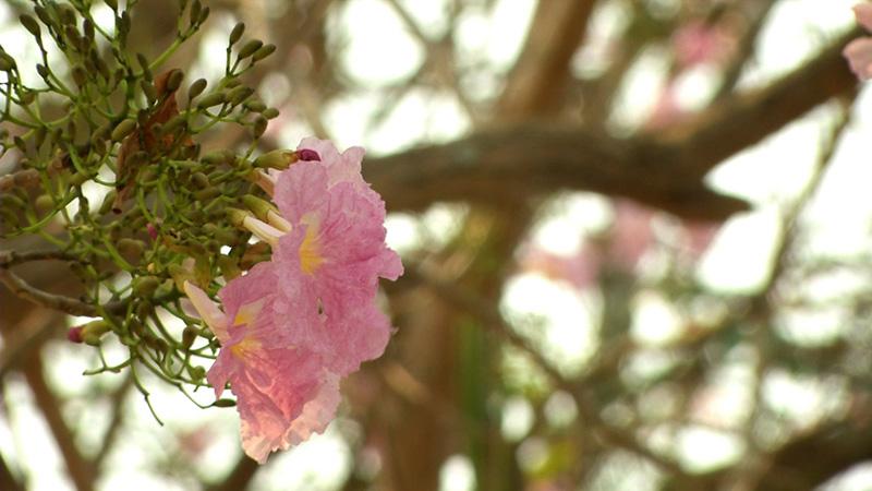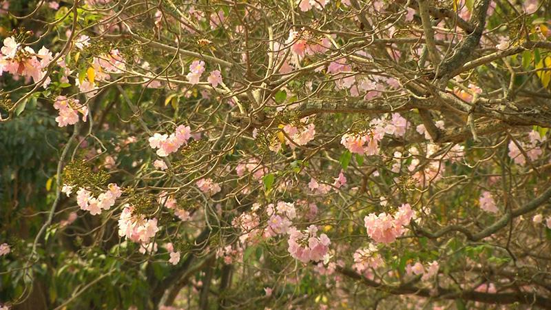 เมื่อแหงนหน้าขึ้นก็จะเห็นต้นไม้ขนาดใหญ่ ออกดอกสีชมพูอ่อน, ชมพูสด และขาว บานสะพรั่งเต็มต้น ตัดกับสีน้ำตาลของกิ่งก้าน ที่ผลัดใบ สร้างบรรยากาศ โรแมนติก อย่างกับอยู่แดนซากุระ