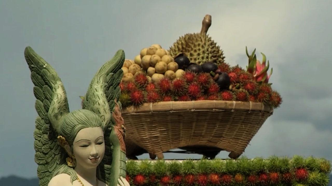แพผลไม้เหล่านี้ผ่านการรังสรรค์ การร่วมแรงร่วมใจของชาวบ้านในพื้นที่ ที่ต้องเนรมิตผลไม้พื้นเมืองให้กลายเป็นเครื่องประดับที่งดงาม แบบนี้กรรมการคงหนักใจไม่น้อย