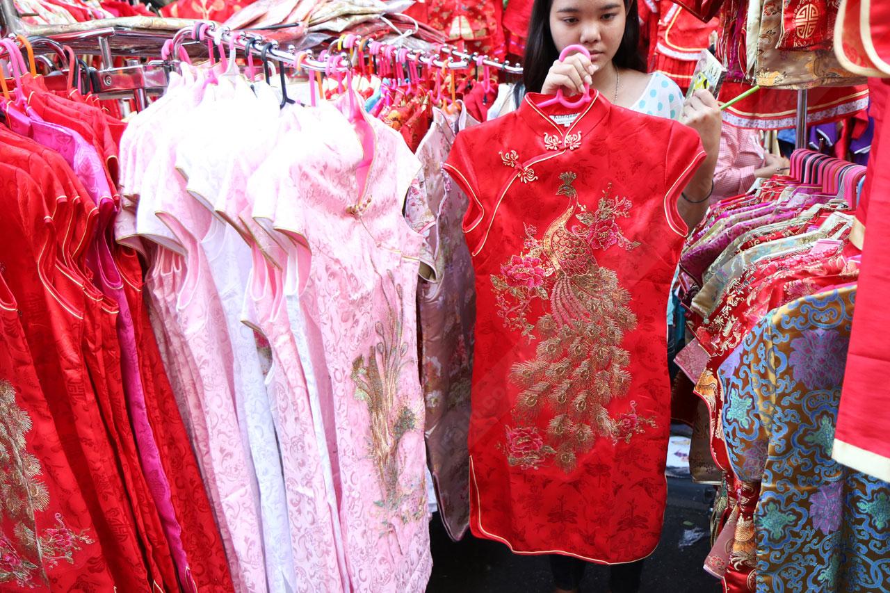 เดินเลาะริมถนนมาเรื่อยๆ ก็ต้องสะดุดตาไปกับสีแดงสดของ ชุดกี่เพ้า ที่สวยงามแปลกตา มีหลายแบบให้เลือกซื้อหา ว่ากันว่ากี่เพ้าเป็นชุดดั้งเดิมของสาวจีนในสมัยราชวงศ์ชิง แต่เดิมรูปทรงของกี่เพ้าจะเป็นเสื้อตัวใหญ่ชายเสื้อยาวคลุมปิดขา ด้านข้างผ่ายาวเพื่อให้เดินสะดวก ยุคต่อมาก็มีการปรับให้ชุดเข้าทรวดทรงองค์เอวมากขึ้น และในปัจจุบันก็ถูกปรับให้ทันสมัย ชายเสื้อสั้นลง และมีหลากหลายสไตล์มากขึ้น สำหรับคนจีนและคนไทยเชื้อสายจีนจะนิยมใส่ในงานเทศกาลสำคัญต่างๆ เช่น วันตรุษจีน สาวๆ มักสวมใส่กี่เพ้าออกมาเดินเที่ยวเฉลิมฉลองปีใหม่จีนกันอย่างสนุกสนาน