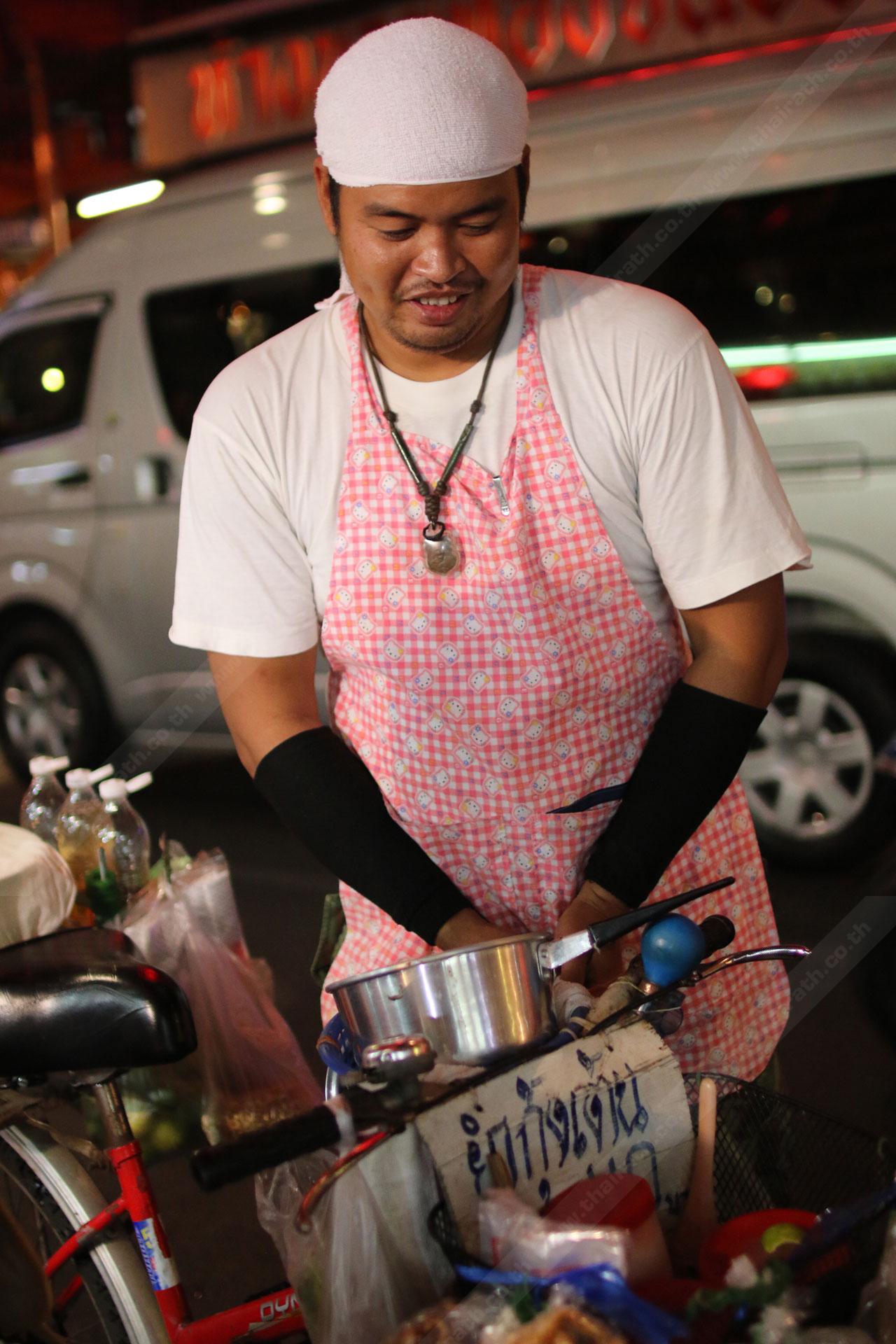 ปกติถ้ามาเดินเยาวราช นอกจากร้านอาหารหรูเรียงรายกันอยู่ตามตึกแถวแล้ว ตามริมฟุตปาทก็แน่นขนัดไปด้วยรถเข็นขายอาหาร มีทั้งข้าว บะหมี่ ผัดไทย ก๋วยจั๊บ ส้มตำไก่ย่าง ผลไม้ ขนม เครื่องดื่ม ฯลฯ เยอะแยะสารพัดจนนับไม่หมด แต่เดี๋ยวก่อน! ถ้าคิดว่าร้านรถเข็นเหล่านี้น่าตื่นตาตื่นใจแล้วล่ะก็...คุณอาจคิดผิด เพราะความน่าตื่นตาตื่นใจขั้นกว่า ต้องนี่เลย 'รถจักรยานขายลาบ'