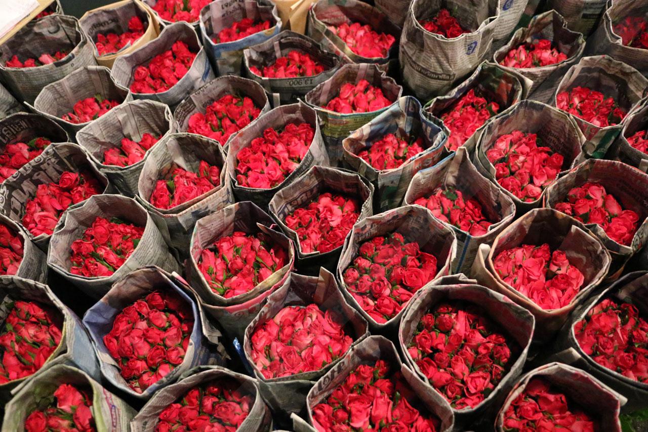 ดอกกุหลาบเป็นดอกไม้ที่มีจำหน่ายมากที่สุดในปากคลองตลาด ไม่ว่าคุณจะเดินไปที่ตรอกซอกซอยไหนก็ต้องเจอร้านขายดอกกุหลาบตั้งอยู่ไม่มุมใดก็มุมหนึ่ง แต่ละร้านจะแบ่งขายตามขนาดของดอก มัดขายเป็นกำ กำละ 12 ดอก ถ้าเป็นขนาดมาตรฐานทั่วไปขายอยู่กำละ 75-85 บาท ถ้าเป็นไซส์ใหญ่ขึ้นมาหน่อย ขายกำละประมาณ 90 บาทขึ้นไป ราคาจะแตกต่างไปตามสายพันธุ์กุหลาบ ซึ่งก็มีขายอยู่หลายสายพันธุ์ เช่น ฮอลแลนด์ พาสเทล ชมพูคลาสสิก มาติยา แดงภูพิงค์ แดงกาล่า เป็นต้น