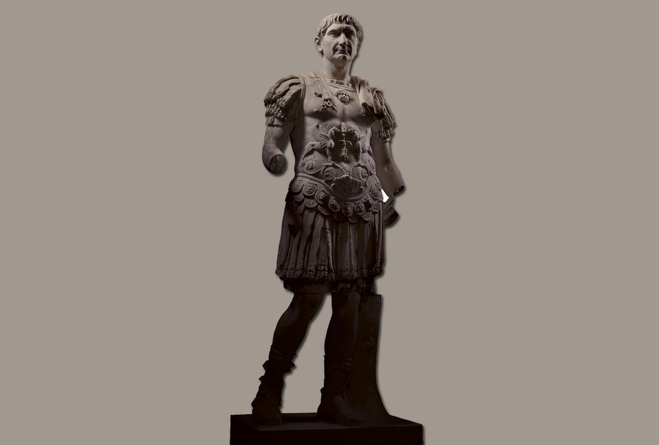 สิ่งที่ตั้งตระหง่านอยู่เหนือลานประชาคม คือเสาหินสูง 38 เมตร ส่วนยอดประดับด้วยรูปหล่อสัมฤทธิ์ของจักรพรรดิ ผู้พิชิต มีภาพสลักบรรยายการทำศึกกับพวกดาเชียนพันรอบเสาในลักษณะเวียนขึ้น ประกอบด้วยภาพทหารโรมันและทหารดาเชียนหลายพันนายที่สลักเสลาอย่างละเอียดพิสดารกำลังเดินทัพ ก่อสร้าง สู้รบ แล่นเรือ หลบหนี เจรจาต่อรอง อ้อนวอน และล้มตายอยู่ในฉากต่างๆ รวมทั้งสิ้น 155 ฉาก เสานี้สร้างเสร็จใน ค.ศ. 113 และยืนยงมานานกว่า 1,900 ปี