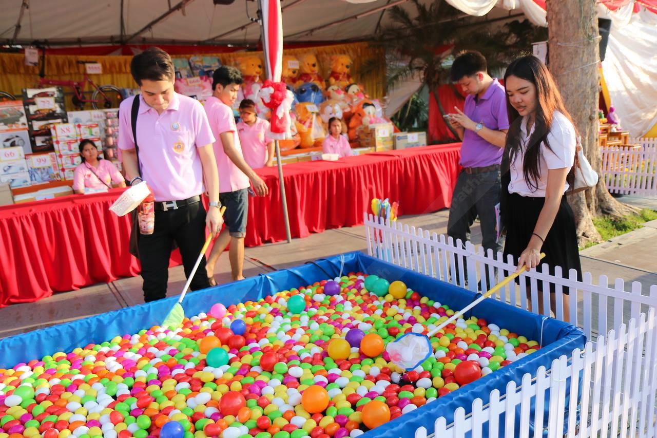 อีกอย่างหนึ่งที่มาคู่กันกับการสอยดาวก็คือ เกมตักไข่ ซึ่งก็มีเยอะแยะหลายบูธเช่นกัน ขั้นตอนวิธีการเล่นก็ง่ายแสนง่ายโดยใช้หลักการเดียวกัน เพียงร่วมบริจาคเพื่อซื้อคูปอง จากนั้นคุณก็นำไม้ไปตักไข่ที่อยู่ในอ่างน้ำใบใหญ่ เปิดไข่ดูสิว่าหมายเลขรางวัลที่คุณได้คืออะไร จากนั้นก็นำหมายเลขไปแลกรับของรางวัลกับเจ้าหน้าที่ รางวัลเล็กๆ ก็ประกอบไปด้วยของใช้ทั่วไป ส่วนรางวัลใหญ่จะเป็นพวกตู้เย็น หม้อหุงข้าว และอื่นๆ อีกมากมาย