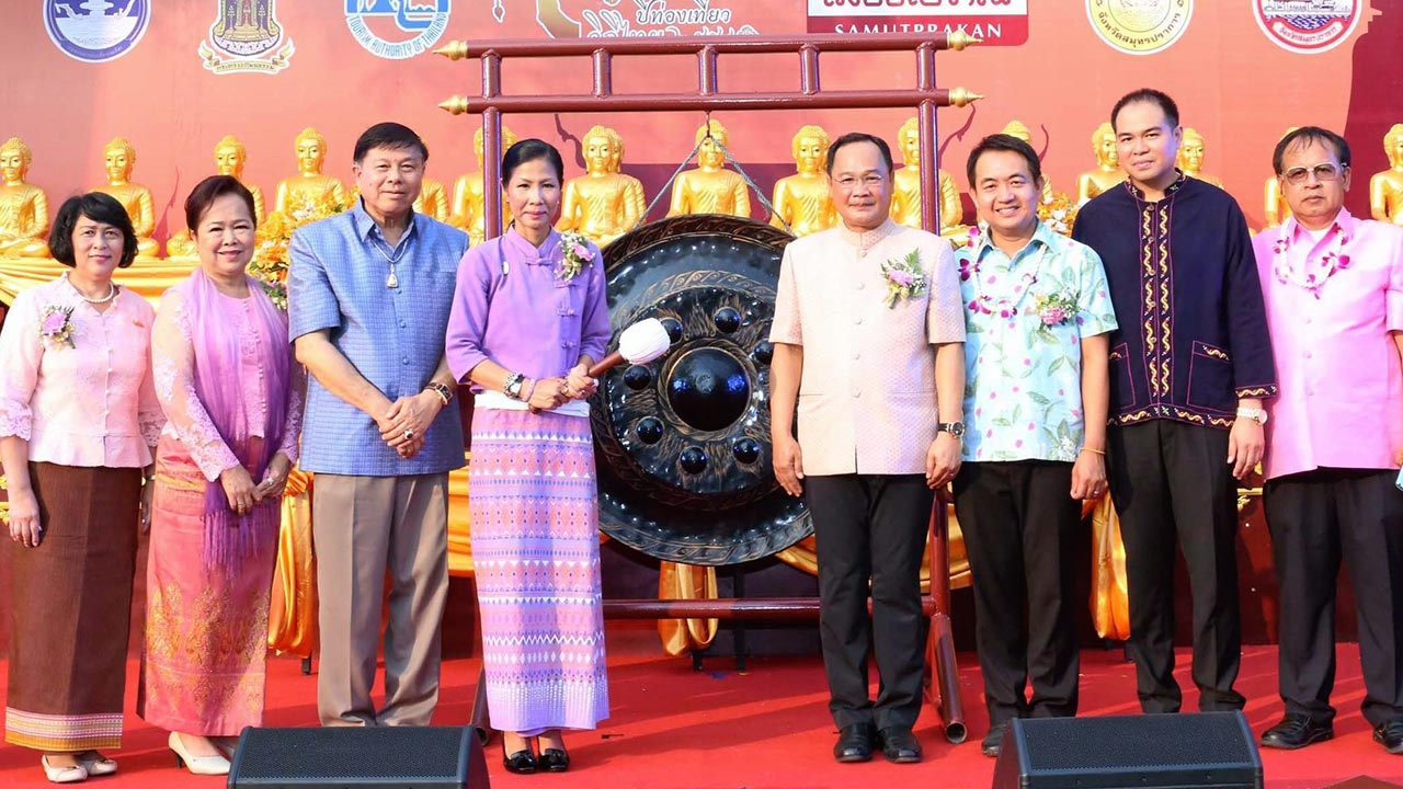 ในวันเปิดงานได้รับเกียรติจากนางกอบกาญจน์ วัฒนวรางกูร รัฐมนตรีว่าการกระทรวงการท่องเที่ยวและกีฬา เป็นประธาน พร้อมด้วยนายพินิจ หาญพาณิชย์ ผู้ว่าราชการจังหวัดสมุทรปราการ นายธีรพล ชุนเจริญ นายกเทศมนตรีตำบลบางปู และนางปานจิตร สันทัดกลการ ผู้อำนวยการการท่องเที่ยวแห่งประเทศไทย สำนักงานกรุงเทพมหานคร ซึ่งร่วมเป็นพันธมิตรจัดงาน “สงกรานต์ปากน้ำ เมืองโบราณ สมุทรปราการวิถีไทย” ในครั้งนี้ โดย รัฐมนตรีว่าการกระทรวงการท่องเที่ยวและกีฬา กล่าวว่า “งานสงกรานต์ปากน้ำ เมืองโบราณ สมุทรปราการวิถีไทย เป็นกิจกรรมหนึ่งภายใต้งานเย็นทั่วหล้า มหาสงกรานต์ 2558 ซึ่งการท่องเที่ยวแห่งประเทศไทย จัดขึ้นใน 15 จังหวัดหลักทั่วประเทศ เพื่อสนับสนุนและฟื้นฟูเอกลักษณ์ของประเพณีสงกรานต์ไทยท้องถิ่นในแต่ละภูมิภาค สอดคล้องกับนโยบายภาครัฐที่กำหนดให้ปี 2558 เป็นปีท่องเที่ยววิถีไทย เพื่อสร้างการรับรู้และความเข้าใจในเอกลักษณ์ความเป็นไทย พร้อมทั้งส่งเสริมแหล่งท่องเที่ยวทางวัฒนธรรมให้เป็นที่รู้จักอย่างกว้างขวาง ทั้งนี้ จังหวัดสมุทรปราการมีสถานที่ท่องเที่ยวมากมายและประเพณีท้องถิ่นที่หลากหลาย สามารถพัฒนาเป็นแหล่งท่องเที่ยวเชิงวัฒนธรรมได้ และงานสงกรานต์ที่เมืองโบราณ สมุทรปราการ ก็เป็นกิจกรรมหนึ่งที่จะทำให้ผู้มาเยือนได้เปิดมุมมองเรียนรู้ประวัติศาสตร์และศิลปวัฒนธรรมในท้องถิ่น รวมถึงภูมิภาคอื่นๆของไทยได้ครบในที่เดียว”