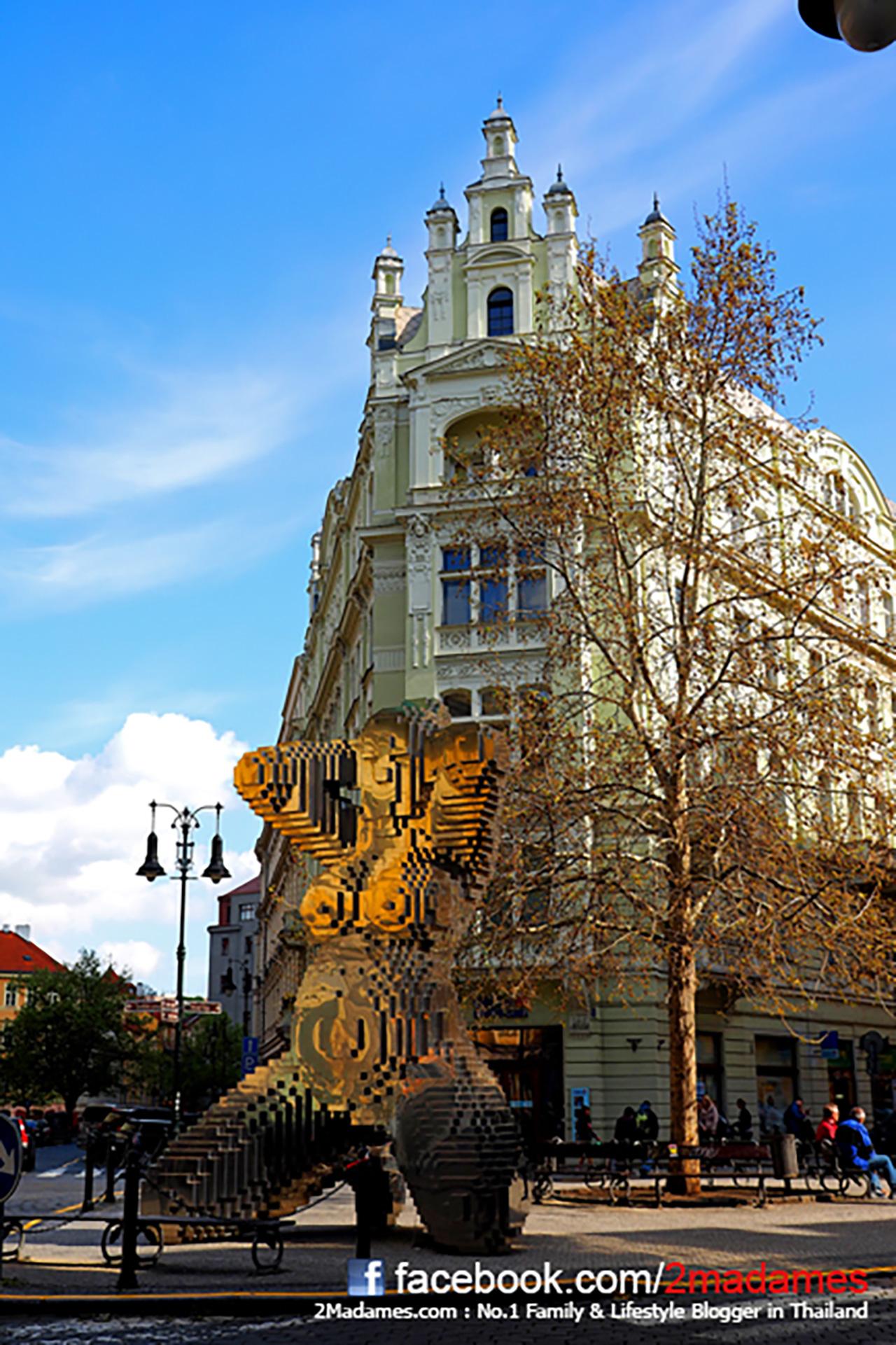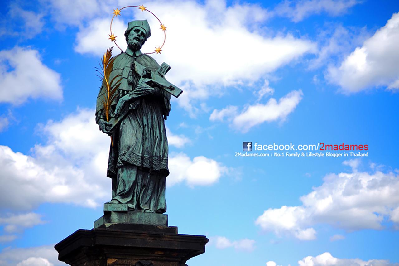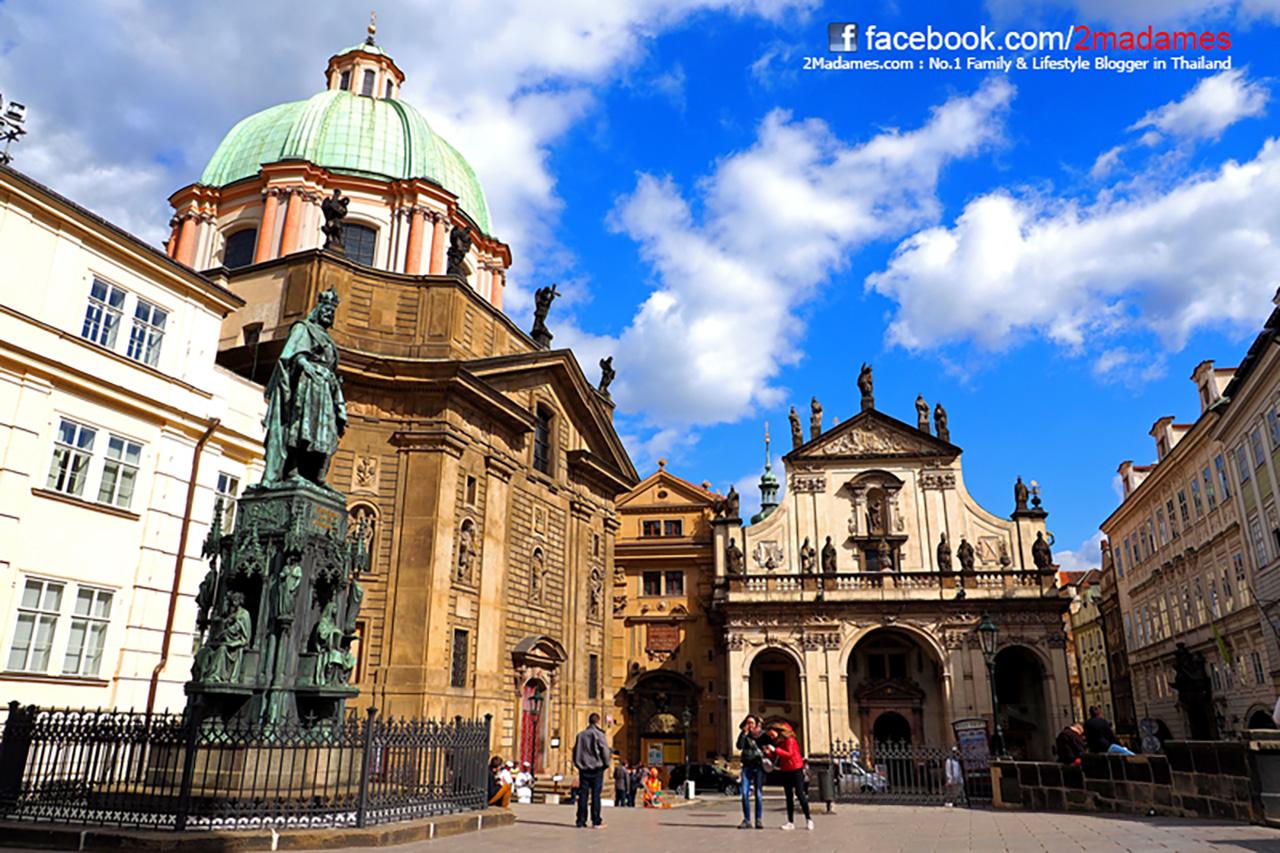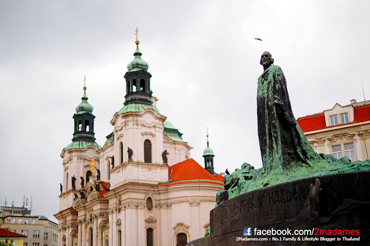 รอบจัตุรัสมีโบสถ์สวยๆ อยู่หลายโบสถ์ครับ ที่มองเห็นไกลๆ คือ โบสถ์เซนต์นิโคลัสแห่งที่ 2 ครับ ส่วนรูปปั้นที่อยู่กลางจัตุรัสคือ ยาน ฮุส ที่ได้รับการยกย่องให้เป็นวีรบุรุษของชาติ ซึ่งคำสลักด้านใต้ของอนุสาวรีย์ว่า “สัจธรรมจะยั่งยืน”