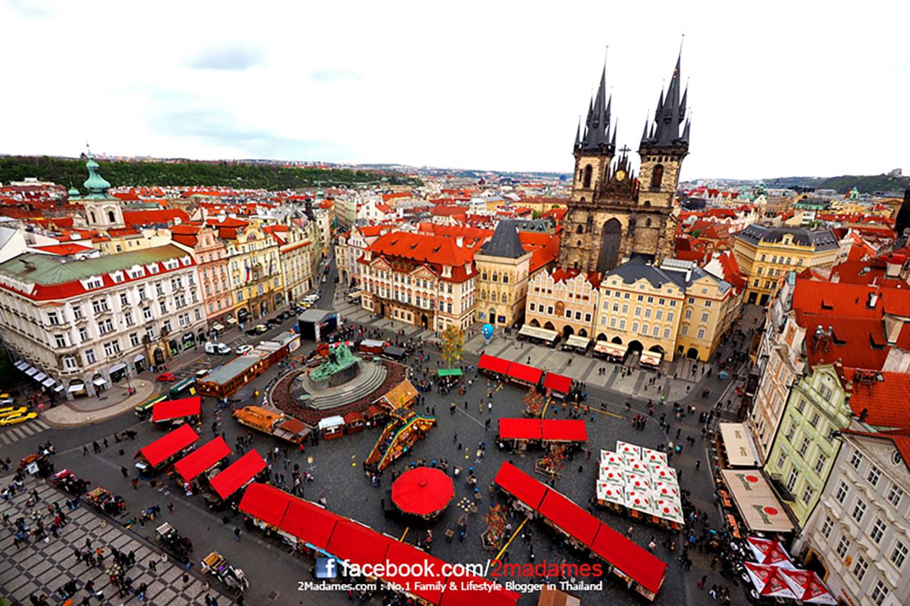 ชมมุมสูงจัตุรัสเมืองเก่า Staromestske Namesti ที่นี่ถือเป็นสถานที่บังคับที่ใครมาปรากแล้วต้องมาเดินเที่ยวกันที่นี่ ไม่งั้นเรียกว่ายังมาไม่ถึงปราก ที่เห็นโดดเด่นกว่าใคร ก็คือ Church of Our Lady Before Tyn หรือ โบสถ์แม่พระ