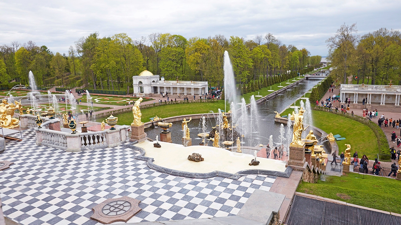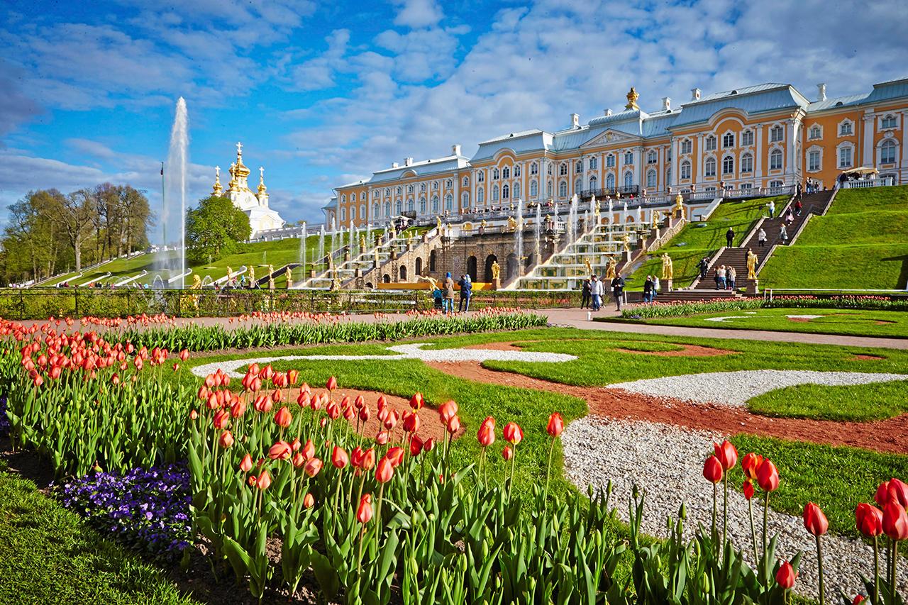 ถัดมาคือ พระราชวังปีเตอร์ฮอฟฟ์ ที่ประทับของพระเจ้าซาร์นิโคลัสที่ 2 สร้างในปี 1705 สมัยพระเจ้าปีเตอร์มหาราช คำว่า Peterhof เป็นภาษาดัตช์ แปลว่าบ้านของปีเตอร์ ได้แรงบันดาลใจจากการเสด็จฯประพาสยุโรป และทอดพระเนตรพระราชวังแวร์ซายส์ของฝรั่งเศส จึงทรงนำมาร่างเป็นแบบ ถือเป็นหนึ่งในตัวอย่างของการออกแบบพระ ราชวังและสวนที่สมบูรณ์แบบที่สุด โดยผสมผสานศิลปะทั้งแบบเรอเนสซองส์ บาร็อก และคลาสสิก โดย เฉพาะน้ำตกที่ลดหลั่นกันถึง 27 ชั้น เปรียบดังความยินดีต่อชัยชนะในสงคราม โลกครั้งที่หนึ่ง ยกย่องความ กล้าหาญของทหารรัสเซีย และทหารเรืออันยิ่งใหญ่ น้ำตกตกแต่งด้วยรูปปั้นถึง 225 ชิ้น มีรูปปั้นแซมซันกำลังง้างปากสิงโต